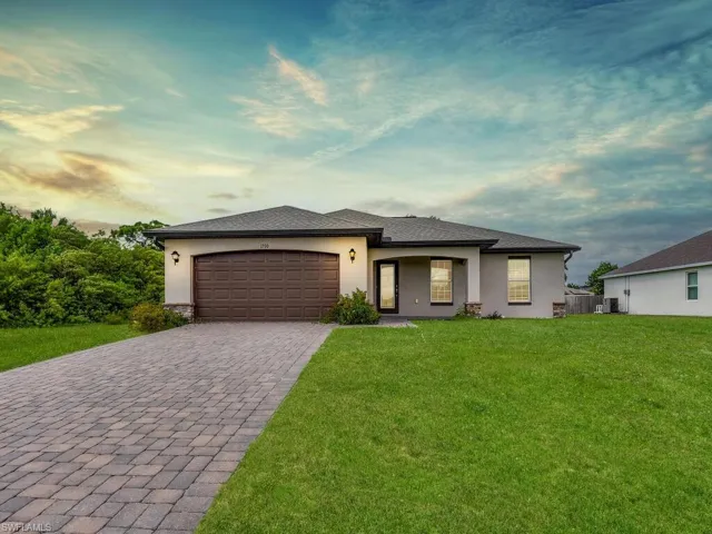 Discover this stunning, move-in-ready new construction home offering 1,904 sq ft of living area located in the fastest-growing area of Cape Coral. Featuring a sleek contemporary layout with 10-foot ceilings and elegant tile flooring throughout, this residence boasts 4 spacious bedrooms and 3 stylish bathrooms.