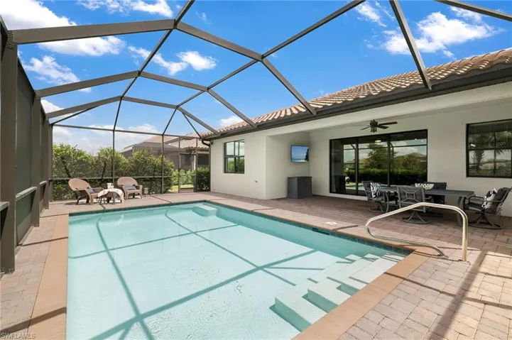 Discover Southwest Florida living in this stunning 5-bedroom plus Den, 4-bath pool home, perfectly situated within the gated community of Copper Oaks in Estero. Your guests will feel the warm welcome at the impressive foyer entry in this home designed for entertaining all the way through the living, dining, and kitchen/family room to the Pool.