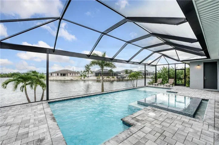 NEW CONSTRUCTION !!!!!!Experience the epitome of Cape Coral waterfront living in this stunning 4-bedroom, 3-bathroom oasis Nestled along a tranquil canal, it offers water access from your backyards and scenic water views. Enjoy Florida’s year-round sunshine by the shimmering private pool, complemented by an expansive lanai – perfect for outdoor entertaining or quiet relaxation .