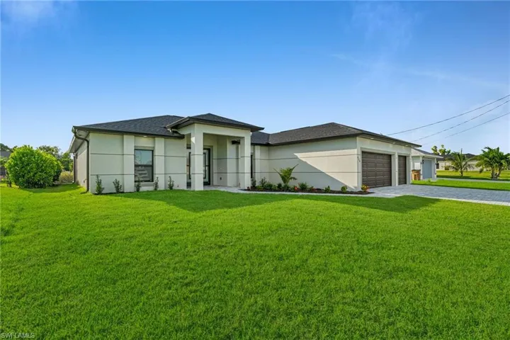 Discover an EXCEPTIONAL opportunity to own this FRESHWATER FRONT SWFL PARADISE - an all-NEW LUXURY CONTEMPORARY HOME built with the finest finishes and READY FOR IMMEDIATE MOVE-IN! This spacious 1,898 sq ft floor plan offers 4 BEDROOMS and 3 BATHROOMS, all adorned with elegant SPANISH PORCELAIN TILE throughout.