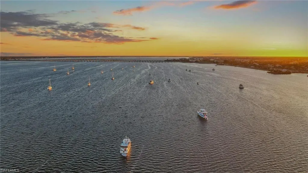 Welcome to a stunning, one-of-a-kind two-story masterpiece in the vibrant city of Punta Gorda, where modern luxury meets serene, tranquil living. Situated on a premium lot, this home boasts expansive water views and mesmerizing sunsets that create a breathtaking backdrop every evening. It’s the perfect retreat for those seeking unparalleled elegance combined with ultimate comfort. Step inside to an open floor plan featuring soaring 10-foot ceilings that fill the space with natural light and an airy, sophisticated ambiance. The chef’s kitchen is truly a showstopper, outfitted with sleek quartz countertops, rich wood cabinets, and premium Whirlpool stainless steel appliances. Soft-close cabinetry and brushed satin nickel hardware add refined touches, while the design effortlessly balances style and function—ideal for gourmet meal preparation or entertaining guests. The kitchen flows seamlessly into the spacious great room and dining area, creating a perfect setting for gatherings and everyday living.