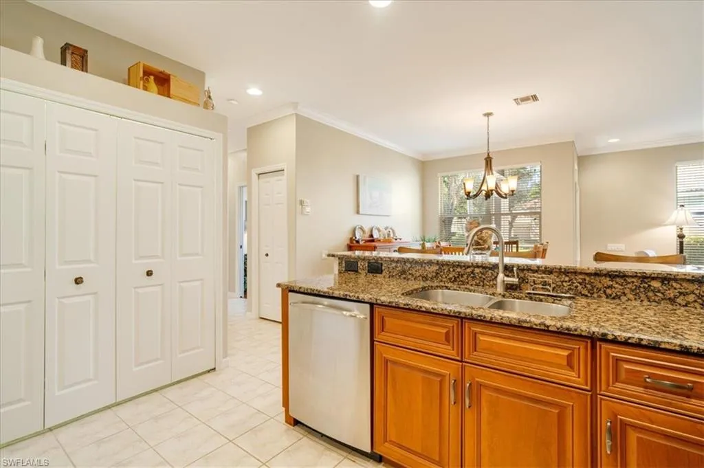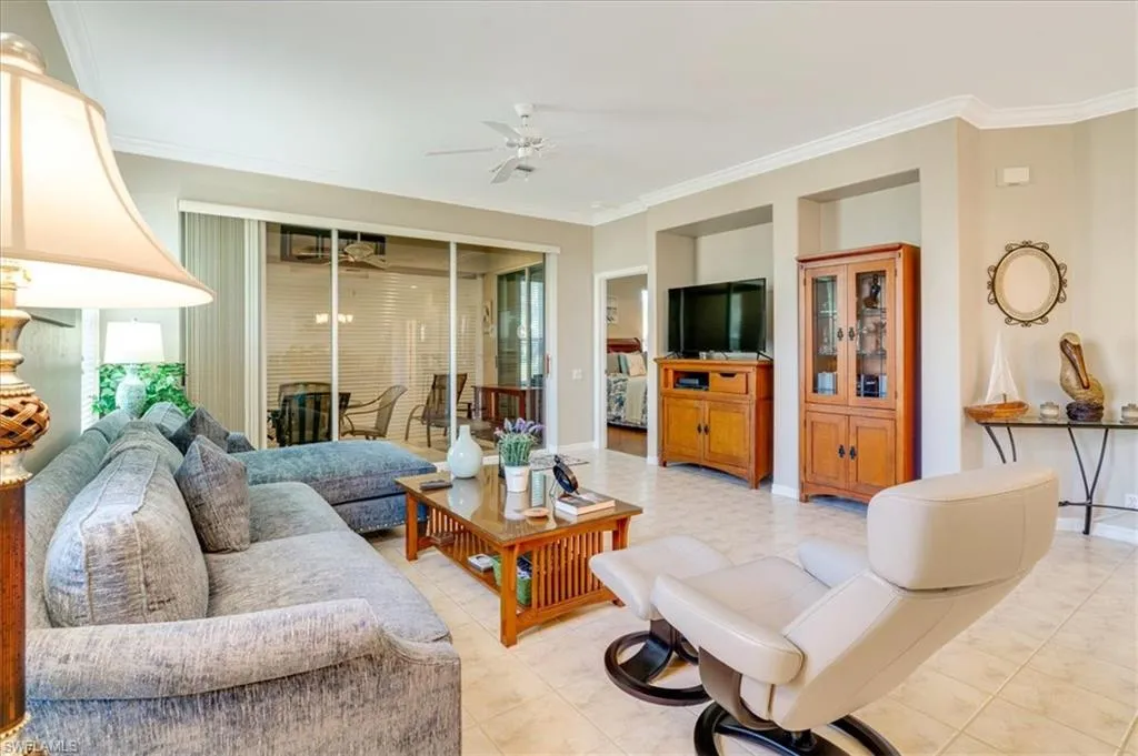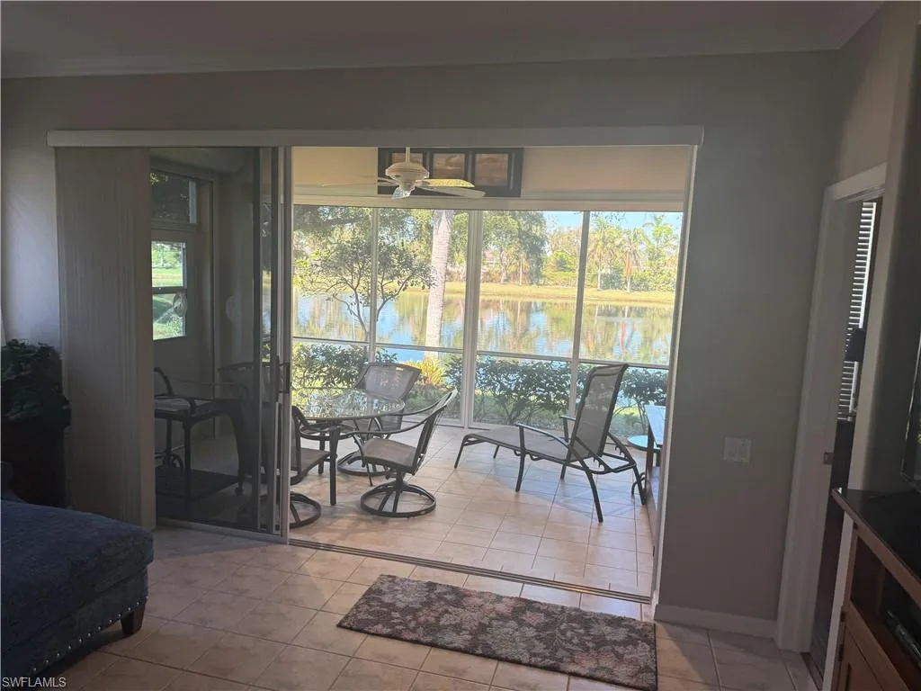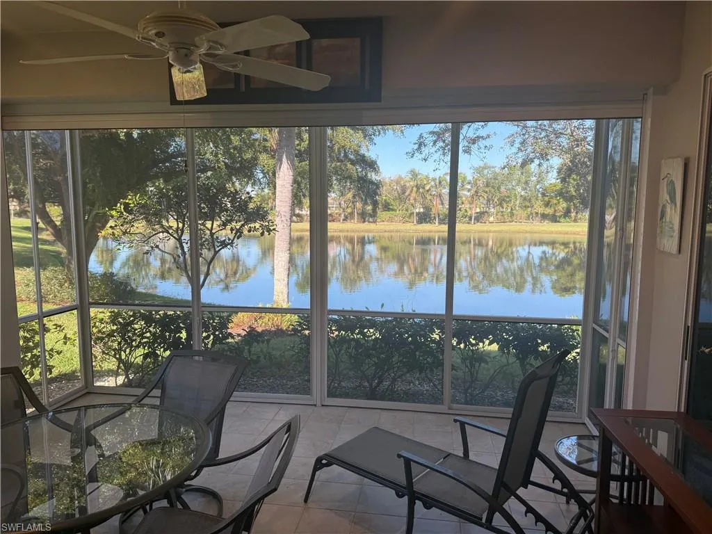 Beautifully updated and meticulously maintained 3-bedroom, 2-bathroom attached villa in Lexington Country Clubs Lake Village, features stunning lake views from the acrylic slider enclosed lanai. This residence comes fully furnished and features an array of recent upgrades that blend comfort with contemporary style. The interior features crown molding and tile flooring in the living areas and a beautiful laminate in the bedrooms. The kitchen has raised panel cabinetry, stainless steel appliances, granite countertops, and a full backsplash with convenient bar seating. A pantry provides additional storage space. The master bedroom has a renovated ensuite bathroom, featuring a seamless glass shower, elevated vanities with granite countertops, and generous storage including a walk-in closet. The guest bathroom has also been completely updated in 2022 with high-end finishes and a tub/shower combination. Recent improvements include a newer variable-speed AC unit installed post-hurricane, (This villa had no water intrusion) a 2021 garage door opener, and fresh interior paint (2022). The lanai is equipped with acrylic sliders, tile flooring, and storm shutters, while both the front entry and lanai feature No See-um screening for added comfort. Currently tenant-occupied until March, this property presents an excellent investment opportunity or future primary residence. Lexington Country Club is just minutes from the Beach , downtown, and just 1.2 Miles from HEALTHPARK Medical Center and Golisano Children’s Hospital