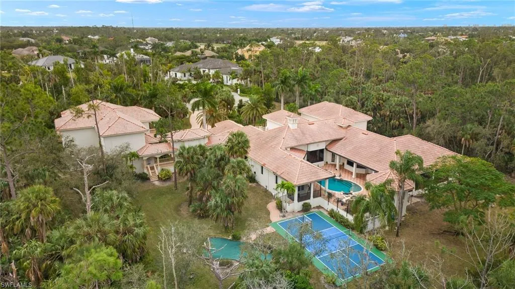 Coveted privacy and unparalleled enjoyment perfectly merge in this stunning estate. When World Series-winning Boston Red Sox pitcher Derek Lowe moved his family to Southwest Florida, they designed the perfect family compound conceived with the concept that life is short, so enjoy every minute. What resulted was this amazing 11,000-square-foot estate with everything one could imagine. From the huge in-home theater with leather stadium-style seating to the billiard room connected with a sports-watching lounge. The home blends indoor and outdoor living wrapped around an elevated pool with a fountain and waterfall and an outdoor kitchen nestled under a beautiful covered cabana. Beyond the pool is a private basketball court, a pickleball court, and a four-hole putting green. No need for a spa visit because the huge primary bath features a soaking tub, a large shower, stunning finishes, and a massage room. Not to be overlooked the home also features a yoga/ballet studio, crafting room, and cigar room designed for a walk-in humidor. A beautiful walkway takes you to the guest house where you’ll find a full gym, sauna, and locker room. The community includes a boat storage and launch area. This home has it all!