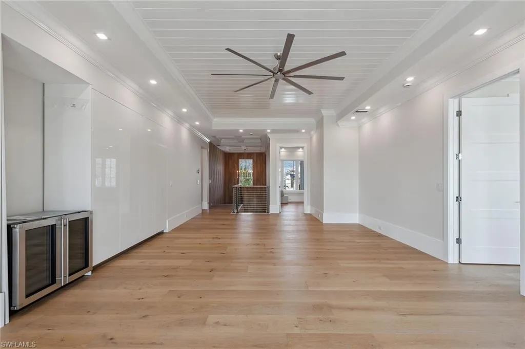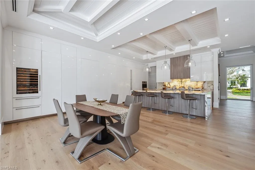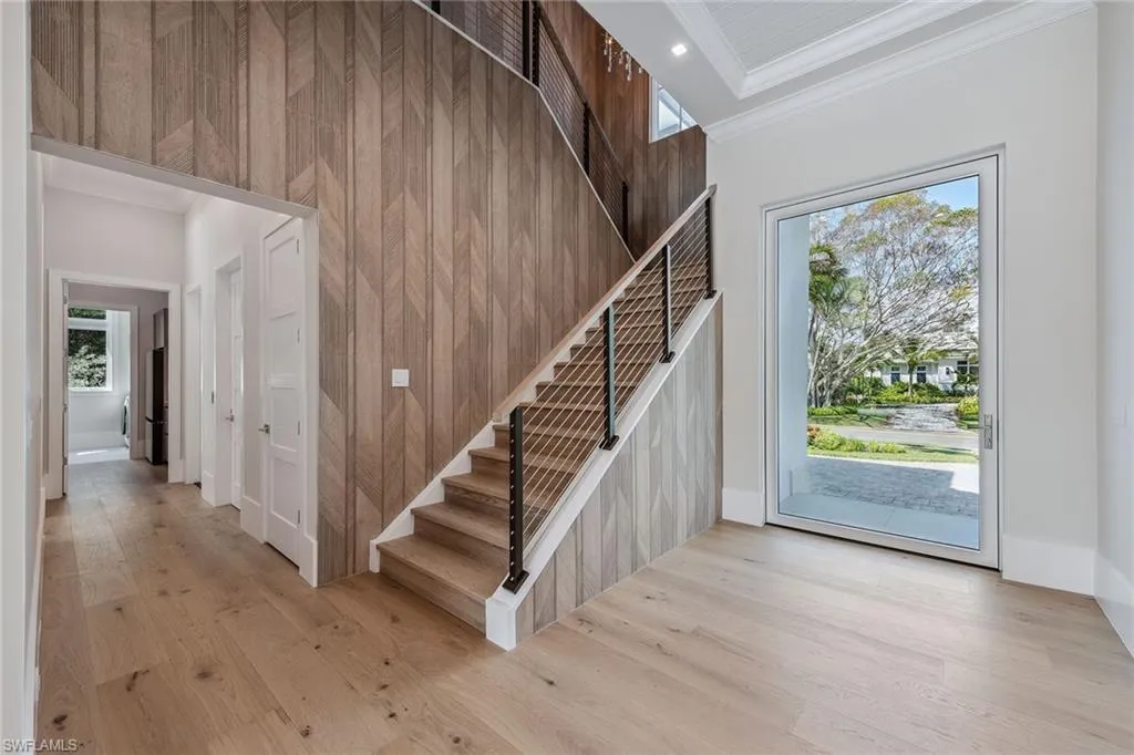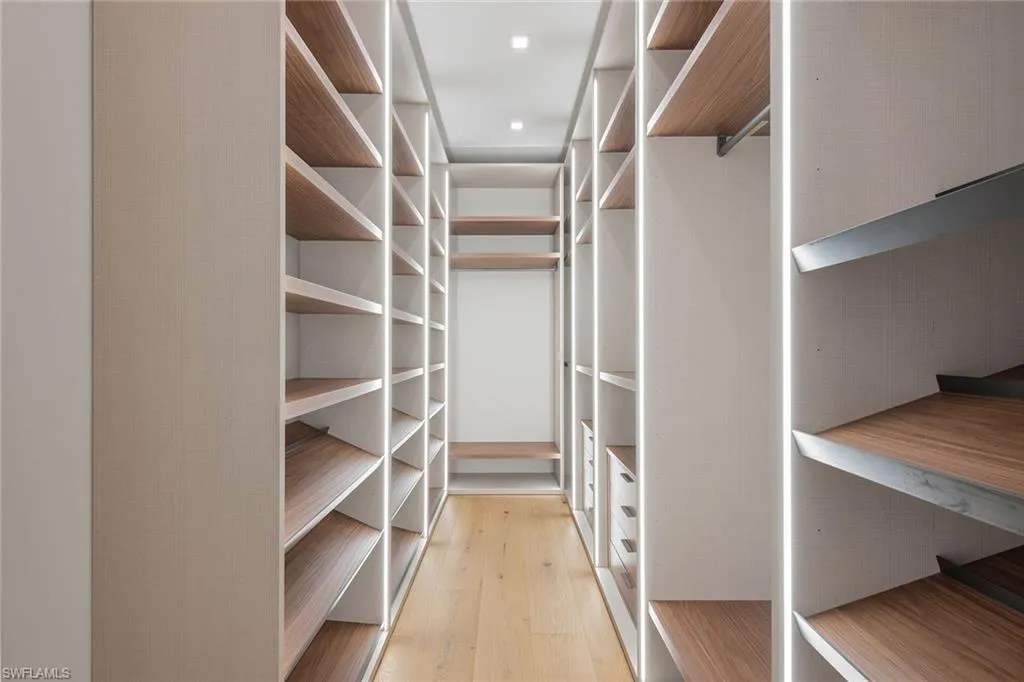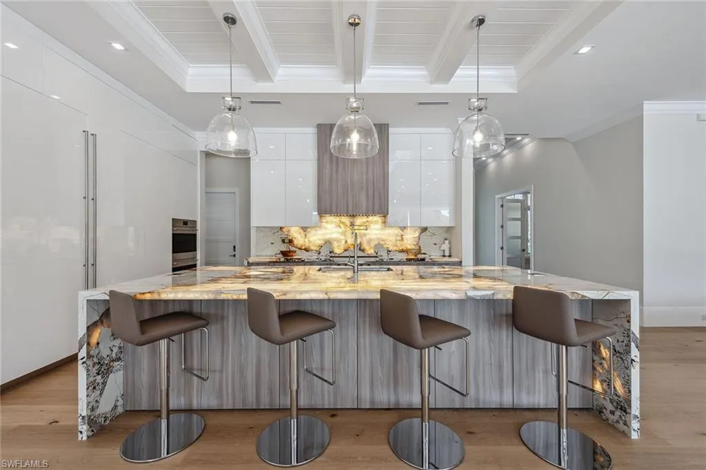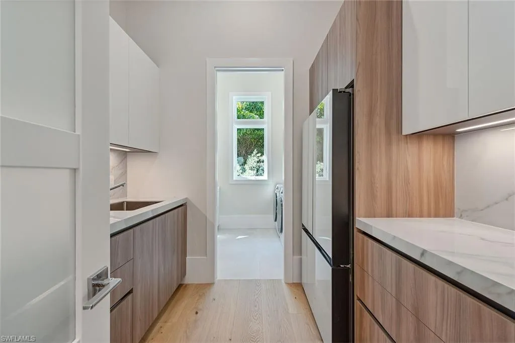 Designed by JMDG Architecture, this luxurious home offers a seamless blend of elegance and function. The kitchen, crafted in Italy by Idea Group, features partially translucent, highest-grade quartz countertops and premium Wolf and Sub-Zero appliances, including a double oven and dishwasher. A spacious walk-in pantry adds convenience. The home’s finishes, including those in the baths, are from the renowned brand Porcelanosa, showcasing sophistication in every detail. With five bedrooms, a den and 5.5 uniquely styled baths, this home offers ample space and style. Rolf Benz indoor furniture and Restoration Hardware light fixtures enhance the contemporary design, while all Anderson windows, sliders and a pivot front door add to the home’s sleek appeal. Outside, enjoy the poolside fire and water feature, complete with electric hurricane shutters and rolldown screens that provide privacy or keep out bugs. The three-car garage has room for up to three car lifts. A built-in wine cooler, 1,000-gallon propane tank and Pentair water filtration system ensure comfort throughout.