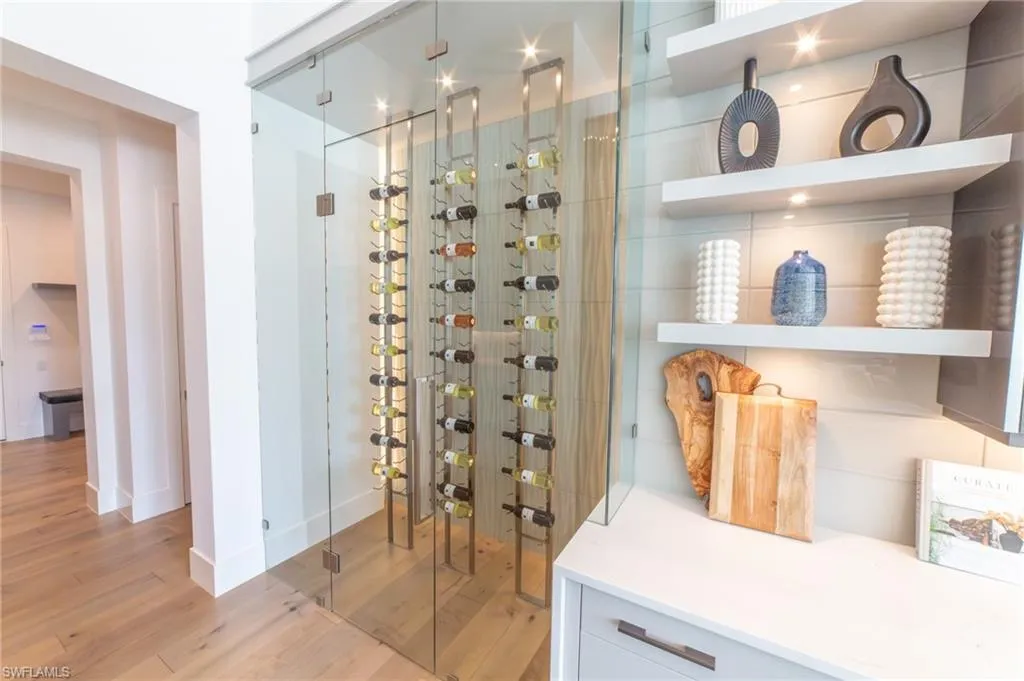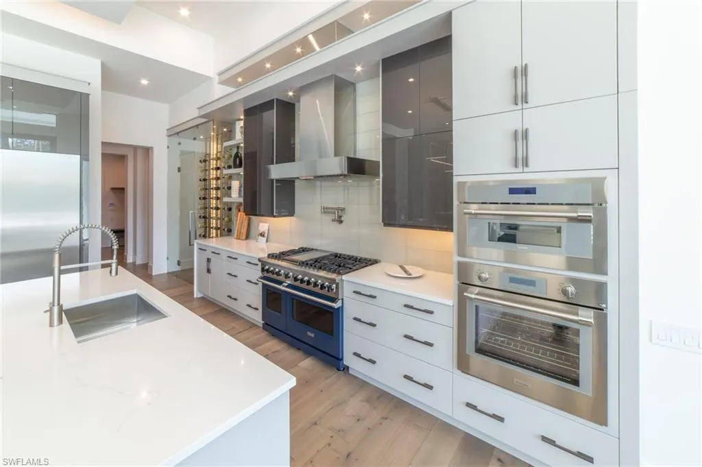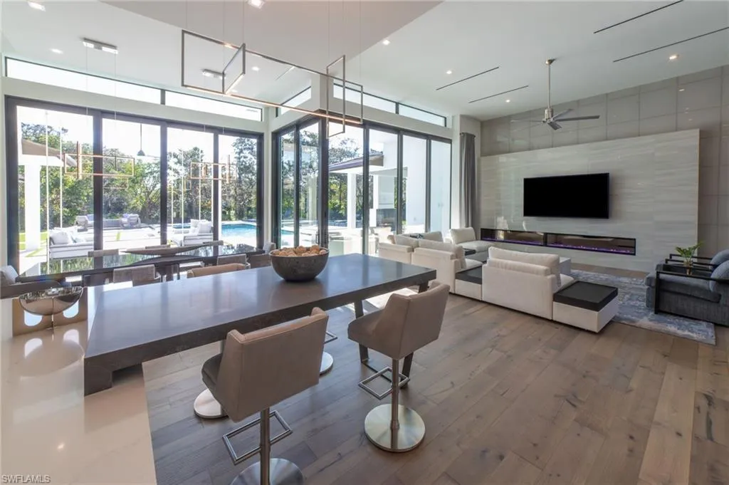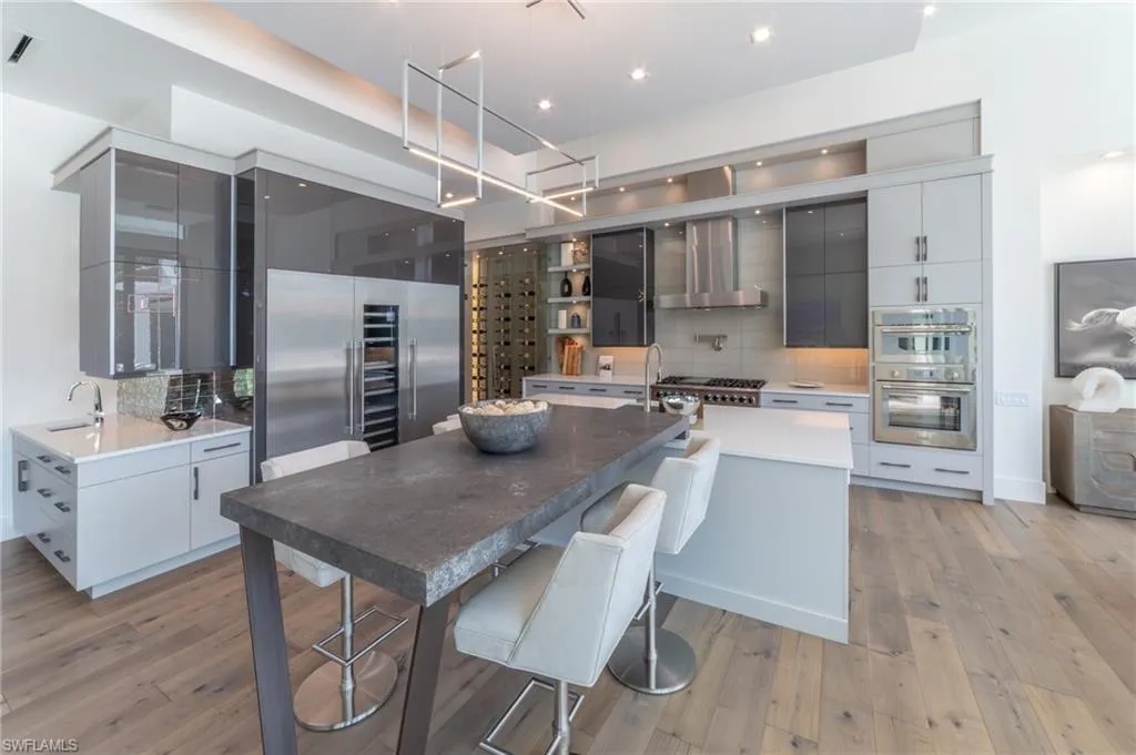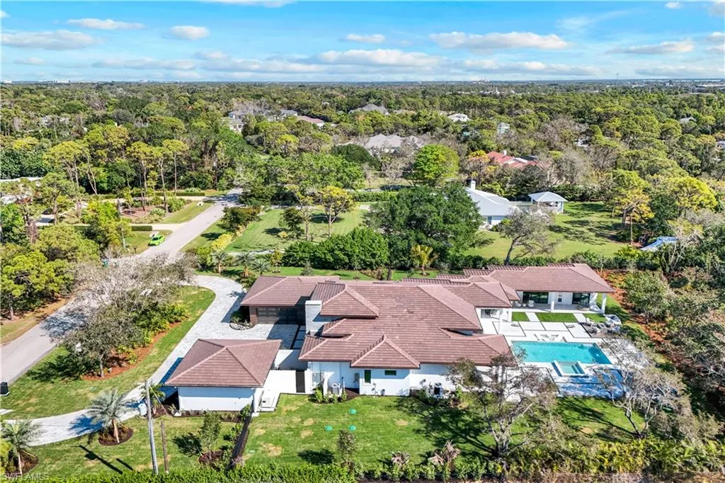 NEW CONSTRUCTION WITH WARRANTY- FURNISHED & READY FOR OCCUPANCY – Located on over an acre of land in Pine Ridge, yet less than 2 miles to the beach, this custom home by Arthur Rutenberg Homes features a modern design with luxurious warmth. The main house features a spacious great room, gourmet kitchen, casual dining area, 3 ensuite bedrooms, a den, flex room, prep kitchen, home delivery center and 4 car garage. Attached by an extended covered cabana and outdoor kitchen is a Casita that offers a private bedroom, bath, kitchen and living room….. perfect for visiting family. With over 900 sf of covered outdoor living space surrounding the resort style pool/spa, outdoor kitchen and fireplace, this home is perfect for entertaining family and friends.