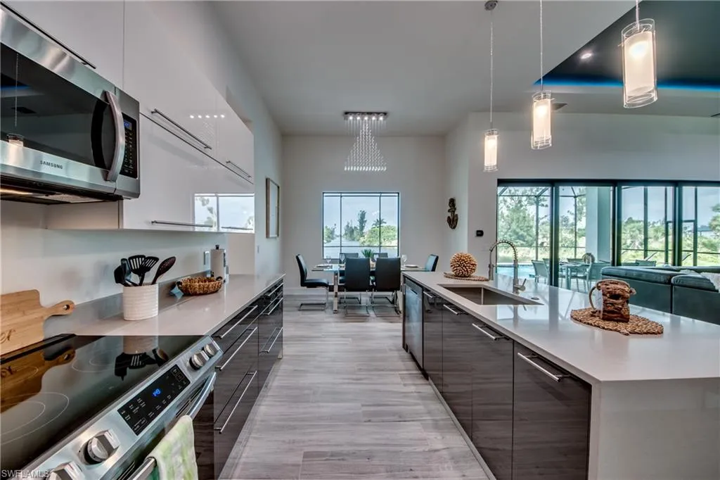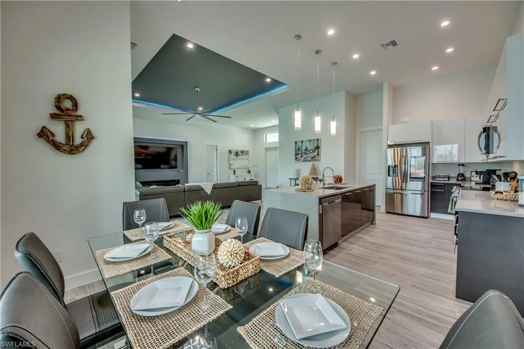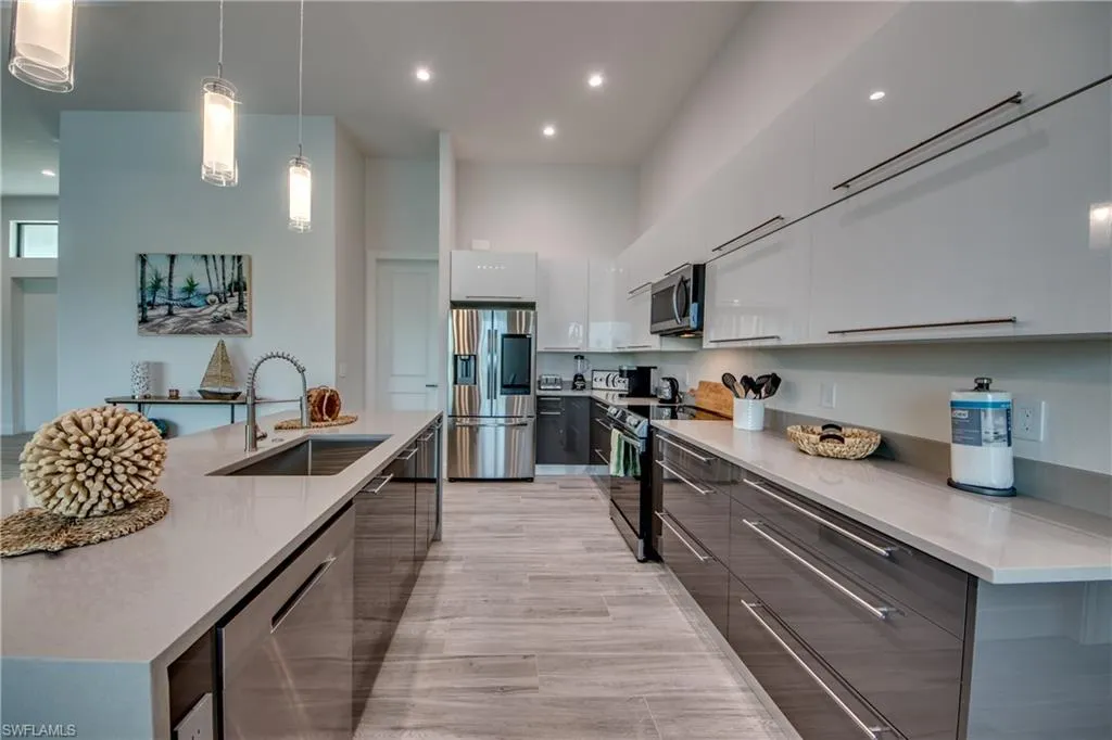 Check out this new custom canal home with heated pool plus spa and western exposure! The view down the entire canal will take your breath away! This contemporary home features 12′ ceilings, 3 bedrooms, 2 bathrooms, a den/office, and 3 car garage. Huge amounts of custom upgrades like the 72″ fireplace make this house stand out from the rest! Beautiful tile is featured throughout the home under its high ceilings. The kitchen is a modern masterpiece that’s sure to attract plenty of attention. High-grade stainless-steel appliances including washer and dryer! The large kitchen island is perfect for cooking, baking, or entertaining friends and family. All windows and doors are impact resistant which means no shutters needed! The pool area features a heated oversized pool and spa. You can look down the entire canal from multiple rooms in the house as well as on the lanai and in the pool. Brand new seawall!!! Pavered driveway and lanai. Great investment opportunity as a vacation rental or simply live in it yourself and enjoy the fabulous Gulf Coast lifestyle. Property management company eager to keep renting these houses out as vacation rentals if new owner so desires!