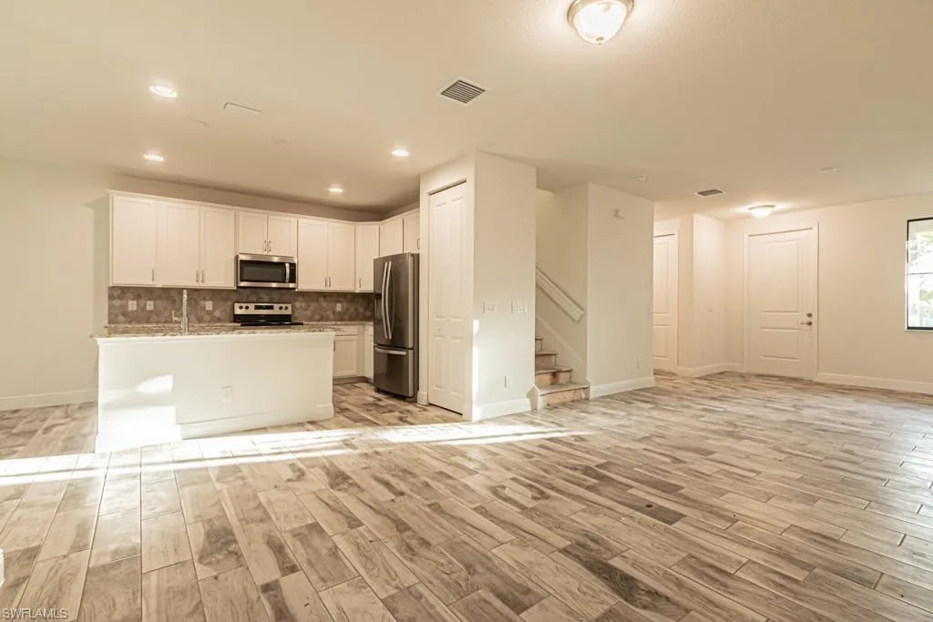 A fully optioned home with impact glass, stainless steel appliances, upgraded white cabinets, level 4 kitchen backsplash, upgraded countertops, upgraded bathroom tile packages, and a wood look tile on the first floor.