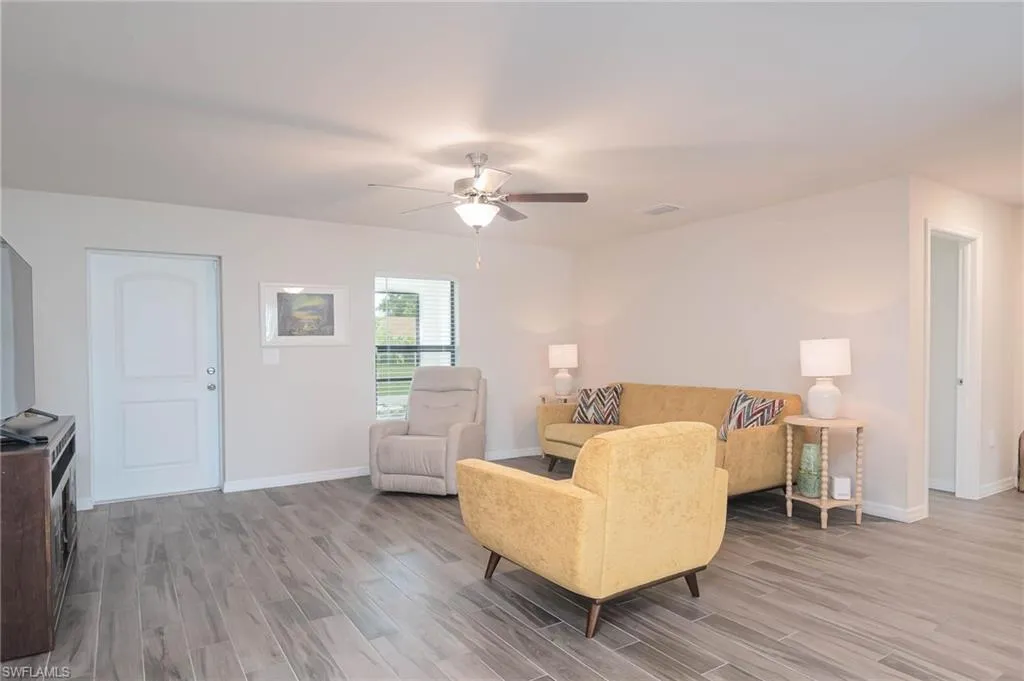 Live Well Here in this Pristine LIKE-NEW Construction Home with Wood-Look Tile Throughout and a Heated Screened-In Pool—Just built in 2022, featuring multiple upgrades for your comfort and well-being! Enjoy the fresh-air on your Oversized Screened-In Front Porch, and Privacy in your Fully Fenced-In Backyard with White Vinyl Privacy Fencing! This home is ready for you to move-in and start enjoying the beautiful Southwest Florida lifestyle in luxury and comfort! Impeccably Maintained, 3 Bedroom, 2 Bathroom, 2 Car Garage Home. 3103 NW 16th Pl is located in a peaceful setting in NW Cape Coral, the backyard oasis is complete with a beautiful paver sun-deck surrounding the large heated pool all tucked inside a screen enclosure. Enjoy the sparkling pool and sunlight then cool off in the shade under the roof-covered area—this backyard sets the tone for pure SWFL staycation energy! More practical perks include an indoor laundry room, an irrigation system to keep your yard healthy, and a 2-car garage. Plus, with its location in FEMA Flood Zone X, flood insurance is NOT required by a lender. This home has had zero flooding whatsoever. This home delivers the best of Florida living: move-in ready, low maintenance, low insurance cost, no HOA, and designed to help you enjoy every sun-kissed moment! Schedule your private showing today and get ready to make yourself at home!!