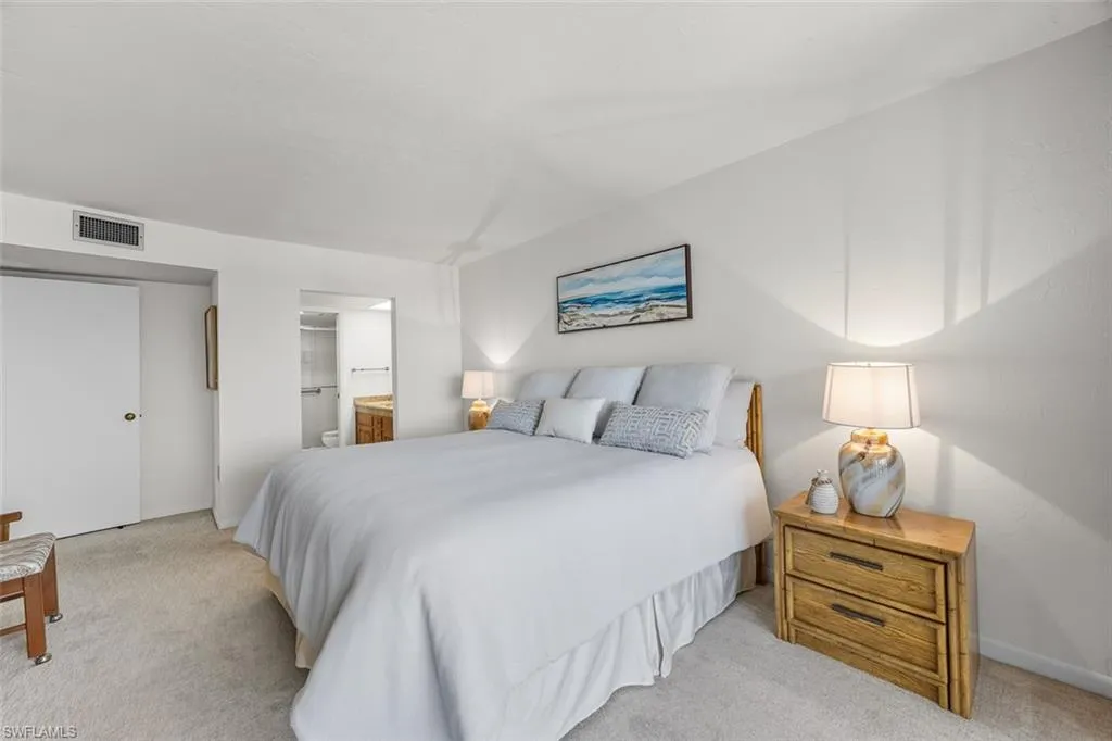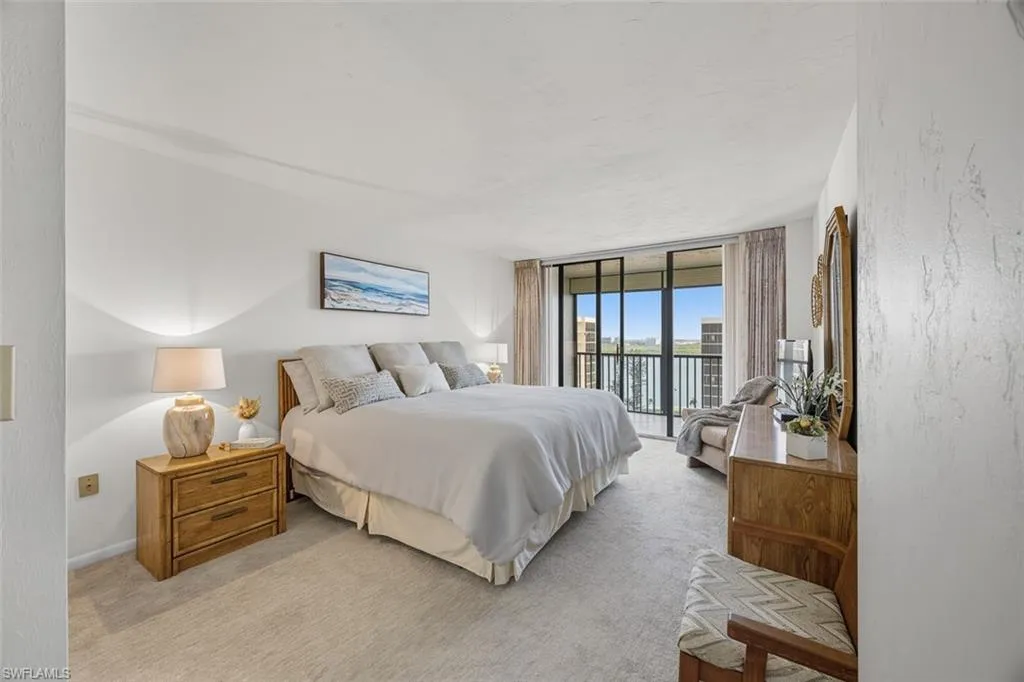 Excellent price for this walk-to-the-beach location! – This is your chance to own a spacious 2b/2b, move-in and/or rental ready residence at the Surf Colony. NEW AC 2024. NEW coastal style lobby and amenities including a poolside fitness room. Bluebill is the best kept secret in the Vanderbilt Beach area. Enjoy the spectacular, panoramic views of the gulf and the bay from your large, wrap-around lanai. Walk to the gorgeous beach, or head down Gulf Shore Drive to experience the elegance of La Playa, The Turtle Club, or The Ritz Carlton. Here you are surrounded by high-end choices for dining, entertainment, and shopping. The Pavilion, Mercato, Waterside Shops, and the Naples Artis are within one – three miles. The iconic 5th Avenue and 3rd Street South are also a short car ride away. Everything you ever wanted is right here at your fingertips.