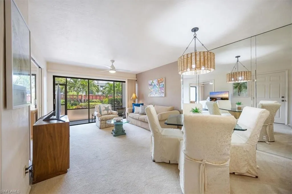 Welcome to 600 Neapolitan Way at Park Shore Resort Club! This amazing ground-floor condo unit has 2 beds, 2 full baths, and lives large with high ceilings and from your private lanai overlooks gardens & pond with lovely bridges that takes you to a heated pool & Hogfish Harry’s restaurant. It is ready to move into or rent out at your convenience. This property and is perfect for year-round or seasonal use. You can rent out 365 days and minimum of one day. Enjoy the lifestyle of Park Shore Resort with 6 pickle ball courts, two tennis courts, fitness room, and restaurant on premises. Plus steps away from high-class dining and shopping at Waterside Shops and Venetian Village, plus close access to both Downtown and North Naples! Option to join the Park Shore Association for private access to Park Shore Beach. A perfect spot for the full time Neapolitan or investor!