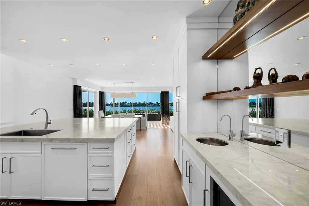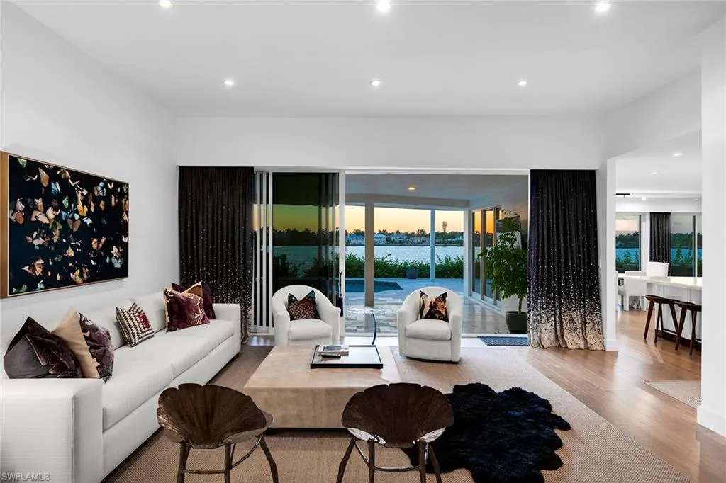 Nestled on a rare coveted Royal Harbor Kingfish open bay waterfront lot, this exquisitely renovated home boasts awe-inspiring westward vistas, captivating with each breathtaking sunset. A masterpiece of modern living, it seamlessly blends indoor and outdoor realms, as it has an opulent interior with top-tier finishes and lavish entertaining spaces. Bathed in natural light from expansive windows and wall to ceiling sliders, the open floor plan beckons you to revel in the splendor of vibrant sunsets right from nearly every room.