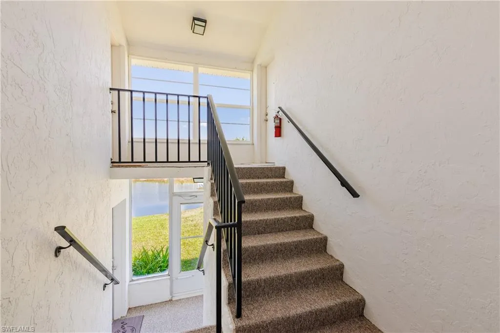 BEST VIEW IN MYERLEE WEST! Overlooking the pool and Lake!!MOTIVATED SELLER!! Bring offer!! Furnished 2nd Floor 2bed/2bath condo. Well kept and clean condo features neutral color palette. Stainless steel appliances in the kitchen. Main bedroom is spacious with plenty of closet space and ensuite bathroom. Many upgrades i.e. all countertops, lights and plumbing fixtures. The Florida room provides extra living area and great views!! Huge walk in pantry, large enough for a work desk. This condo is directly across from the pool, just a short walk from the back stairs! Myerlee Park West is a 55+ community and offers clubhouse with a kitchen, TV, plenty of tables for gatherings, and a pool table, a pool and grills. Ideally located between Gladiolus Blvd and Cypress Lake Rd, close to beaches, shopping, entertainment and more!