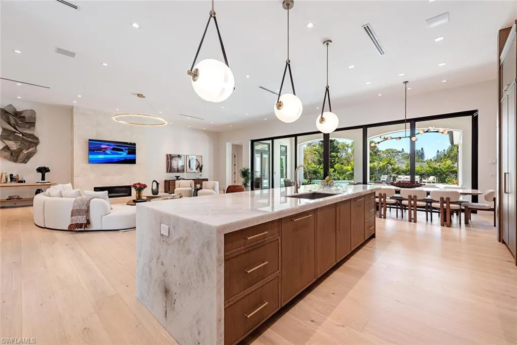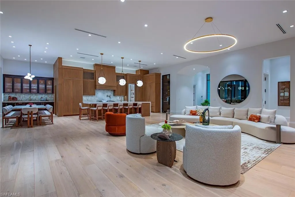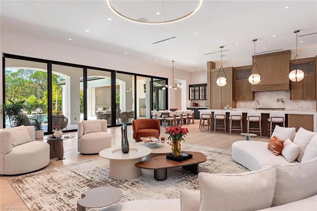 Incredible new construction opportunity in highly sought after Pine Ridge Estates. The team assembled by GNR Developers has once again raised the bar for luxury living. Thoughtfully designed by Unique Hite Designs, conscientiously constructed by the Glendale Group of SWFL, and exquisitely appointed by AZ Designs; this home exemplifies the ingenuity, craftsmanship and exquisite taste that each are known for respectively. Classic architectural details are fused with a more contemporary layout and the finish sets a new precedent for today’s style and needs. Large, bright interior spaces and an abundance of covered and uncovered outdoor living spaces. Spectacular pool and spa area, plenty of green space and a grand fire pit layout. Designed with 3 bedrooms on the ground level and 3 bedrooms up with bonus living and game area. Phenomenal gourmet kitchen in addition to a full prep kitchen boasting Wolf, Miele and Sub-Zero appliances. The 6th bedroom is a fabulous separate guest casita complete with living area, kitchen, and utility room. There are 6 garage bays with enough height for car lifts in addition to a motor court for the auto enthusiast. This is the one you’ve been waiting for.