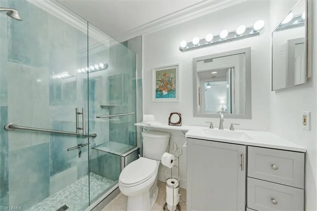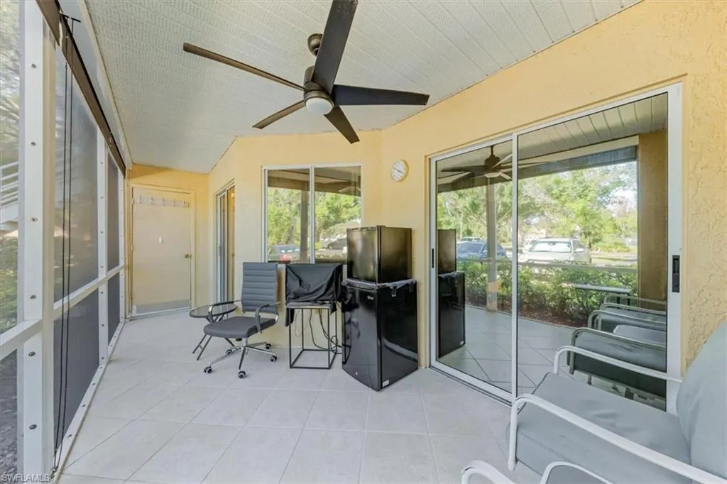 LOCATION, LOCATION! Close to FGCU, Coconut Point Mall, Miromar Outlets & Airport! This beautifully remodeled 2-bedroom, 2-bathroom END UNIT, located on the first floor, is sure to impress from the moment you arrive. The open-concept kitchen features a breakfast bar, granite countertops, and newer appliances. The spacious, flowing floor plan, with tile flooring throughout, is perfect for entertaining. Special touches include crown molding, remodeled walk-in showers with elegant tile walls and built-in benches (with handicap bars), new commodes, and granite vanities with sinks. The home also boasts new ceiling fans throughout, as well as newly replaced lanai screens. Storage is abundant with walk-in closets in both bedrooms, and a newer washer and dryer are included. Additionally, the electrical circuit breaker box was updated in 2021, and the water heater is approximately 4 years old. The A/C compressor is also about 3 years old. To enhance comfort, the seller has installed window and slider tinting to reduce sun glare. Relax and unwind on the spacious lanai with your favorite beverage. Fountain Lakes offers a wealth of amenities, including a 9-hole golf course, pickleball, tennis, a fitness center, a playground, a billiards room, a picnic area with grills, and a swimming pool. Plus, there’s an additional pool at The Greens. What more could you ask for? Two pets are allowed with approval.