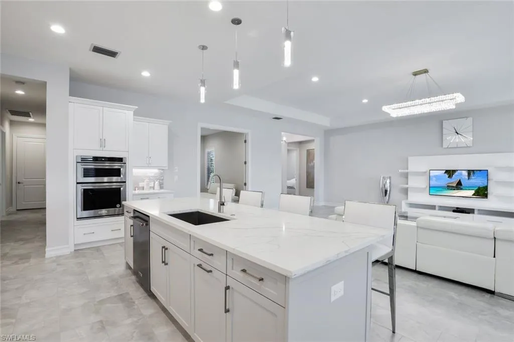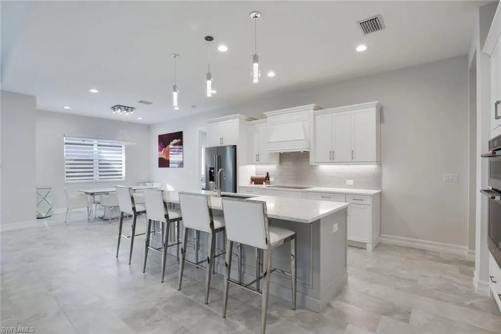 Spectacular Stock built Plantation III four bedroom three and one half bath contemporary pool home with southern exposure and beautiful lake views. 3 Car garage – with high ceilings suitable for a car lift. Gorgeous pool and spa, panorama screens, and a fabulous outdoor kitchen. Centrally located in between Naples and Marco Island this private development. Ideally located near local eateries and conveniences such as Publix, Aldi`s, Walmart, Lowes, Dunkin Donuts, Chipotle, Miller’s Ale House, Off the Rock Tavern, and many more – banks, gas stations, salons, etc!