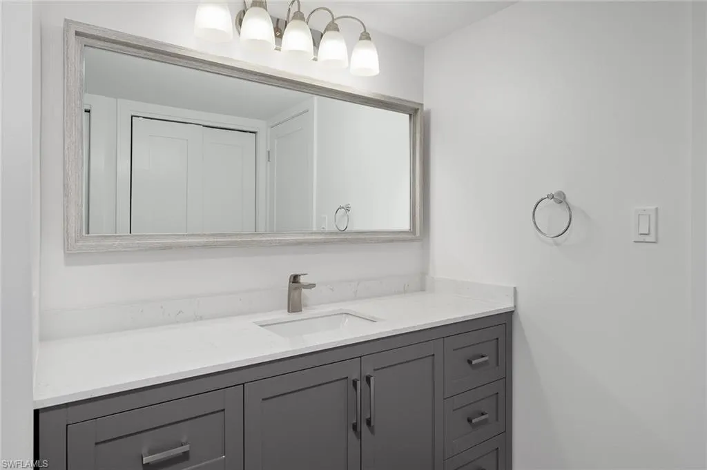 A 55+ golf and social activity paradise in the heart of the Ft. Myers / Southwest Florida. This totally refurbiished condo has a view over looking the 6th fairway. The unit has been upgraded with laminate flooring, lighting and bathrooms with new fixrures. Quartz counter tops and all new appliances and impact windows. The community offers a wealth of daily activities including tennis, pickelball, billards, 6 heated pools and numerous other activites. There is also a main clubhouse for dancing, dining and scheduled formal events. Come see this 55+ commintiy that offers so much for your retirement lifestyle.