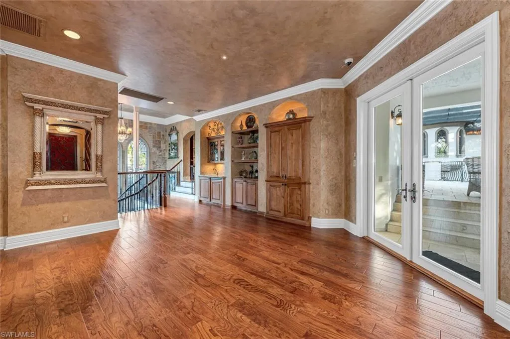 : Foyer, French Doors, Laundry Tub, Pantry, Smoke Detectors, Tray Ceiling(s), Volume Ceiling, Walk-In Closet(s), Coffered Ceiling(s), Built-In Cabinets, Closet Cabinets, Custom Mirrors, Bar, Fireplace, Wet Bar