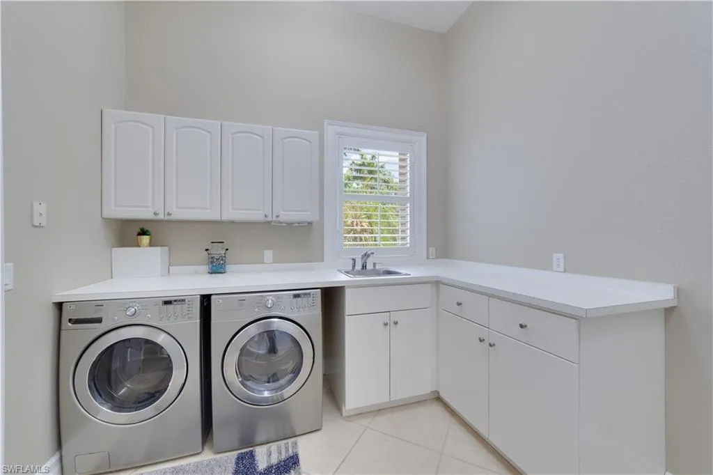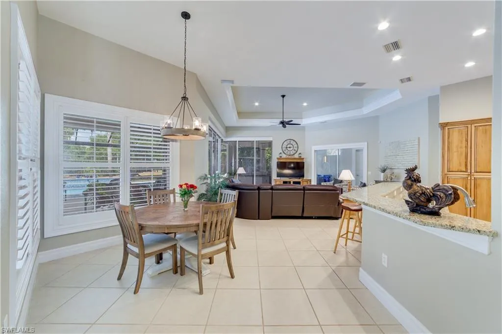 This stunning property boasts a screened oversized pool and lanai, perfect for entertaining or simply enjoying a peaceful afternoon by the water. The outdoor kitchen is ideal for al fresco dining and soaking in the warm Florida sunshine.