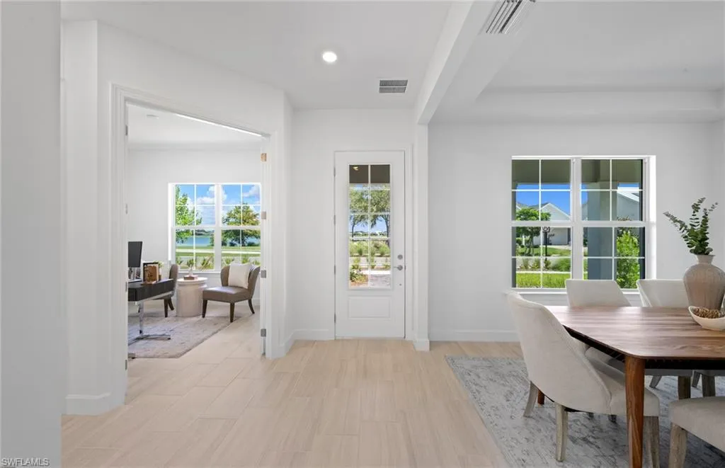 The Woodview floor plan home features 4 bedrooms, 3.5 baths, a den, planning center, and an extended covered lanai! This home is situated on an ideal lot with beautiful greenery and walking trails right outside of your front door. Sit outside on your front porch and enjoy the uninterrupted, peaceful view of Lake Timber, the second largest lake in Babcock Ranch! Lake Timber is known for its close proximity to bike and hiking trails, and is just steps Founder’s Square! The 2-story Woodview home features an enclosed den, formal dining room, beautiful kitchen with built in stainless steel appliances, an oversized island open to the cafe and gathering room, generously sized laundry room with counter space/cabinets with storage, an extended covered lanai with a pocket sliding glass door (SE facing lanai), in addition to a front porch! Make your way to the 2nd floor where you will find an additional living space/loft, owner’s suite with an oversized walk-in shower, and three additional bedrooms all with plenty of closet space. This home has an impressive amount of storage space throughout for added convenience. Lake Timber has limited opportunities remaining and does not have a sub-HOA fee! This home is a 12 minute walk or 3 minute bike ride to Founder’s Square, is steps away from the best hiking trails in the area, and is right off of SR-31! This Woodview is being built and will be complete March-May 2025. Photos are for illustration purposes only. Options may vary.