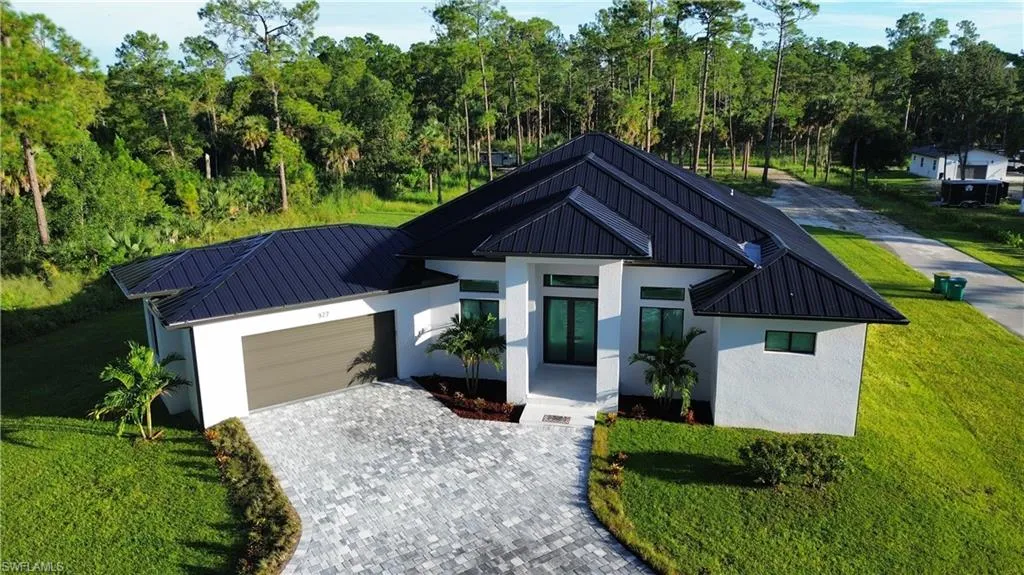 Fourth guest bathroom with access to inside of home or large lanai with a full kitchen, perfect for entertaining guest. Room for large pool. Aluminum roof, house with impact doors and windows, fully foam insulation even in garage and lanai area to keep energy level at low cost. Reverse osmosis water system. No restriction or Hoa. Close to new project opening of Vanderbilt beach Road.