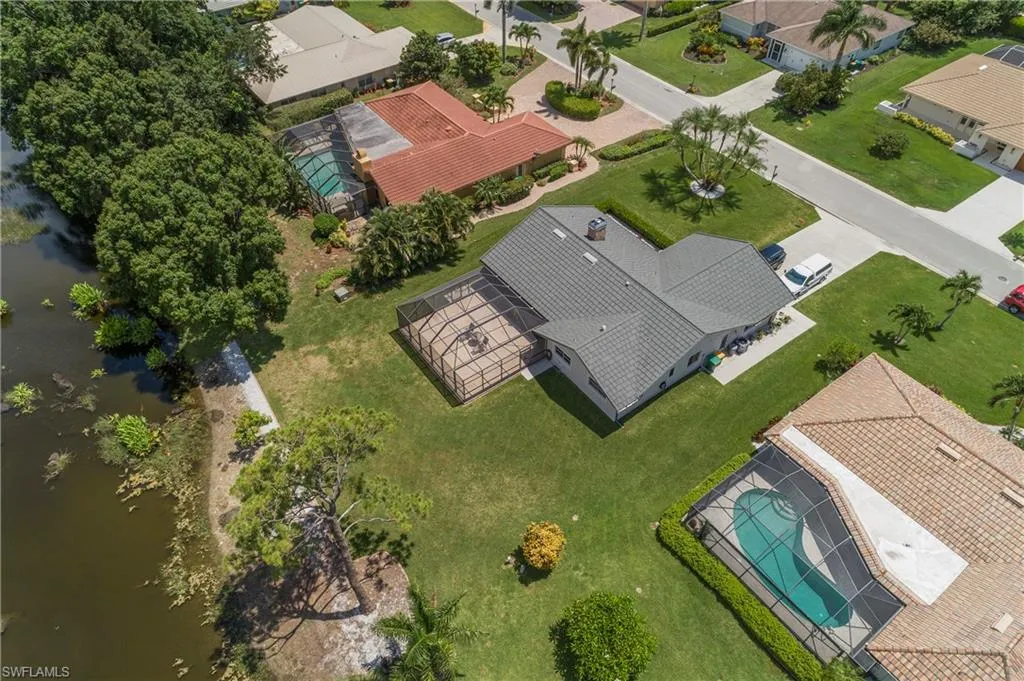 Tropical, lushly landscaped .27 acre lot with tranquil lagoon and golf course views from your 1000 sq ft lanai (over 300 sq. ft. under roof) including “Bullfrog” brand hot tub. This meticulously maintained home in an X FLOOD ZONE with LOW $225 YEARLY HOA DUES, features ALL premium updates and a NEWER architectural designed metal roof (50 year warranty), AC System, PEX Plumbing, Lawn & Irrigation System, Garage Door, Insulation, Electrical Outlets and so much more. The spacious kitchen & laundry room boast ALL NEW Stainless Steel APPLIANCES, Granite Countertops plus Natural Hickory Cabinets and the bathroom showers highlight 20″ Italian Porcelain Tile, mosaic floors and glass doors. All closets have Custom Wood Shelving and the great room centerpiece is a one of a kind, natural keystone/fossilized coral, Wood Burning Fireplace with a single stone hearth. Lely Country Club is 10 minutes to downtown Naples and 15 minutes to crystal blue water and white sandy gulf beaches. Experience “Naples Best Kept Secret” and “last bastion” of single family, non-condo fee living on large lots, close to everything Naples has to offer. Torrey Pines is a friendly yet quiet (dead end street/culdesac) neighborhood SURROUNDED BY A PRIVATE GOLF COURSE where beauty and privacy meet convenience.