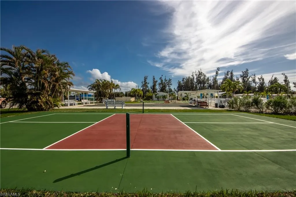 MOTIVATED SELLERS, BRING ALL OFFERS! St. James City is known for its secluded and relaxed atmosphere and that is exactly what this home possesses, plus more!! CORNER LOT! No one to the left of you which is very nice!! Take a step inside this immaculate 2 bedroom 2 bath home with many updates. Each bedrooms offers an ensuite bath complete with spacious closets. The kitchen comes well equipped with nice appliances. The living room is inviting and bright. Just off the living room you will be delighted to have a beautiful Florida room fit for even more guests. This room would also make a nice office. An outdoor oasis awaits, with access from either bedroom. Enjoy watching the game with friends in your screened in porch or enjoy cocktails amongst the breeze. Just steps off the deck is your Tiki hut that will fulfill any chef’s love of cooking! This home also includes a Wen 50 amp whole home generator with 100 lb propane tank. Amenities galore including Clubhouse, heated pool & spa, pickleball, bocce and dog park! Need a place to store your boat or RV? No problem! Gated storage available!! 55+ community with Gulf Access boat ramp for fishing and boating enthusiasts!