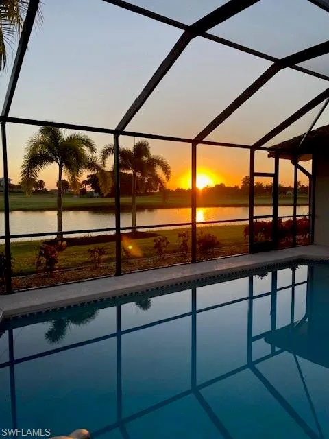 BACK TO MARKET WITH A NEWLY REDUCED PRICE TO SELL QUICKLY!!! ALL OFFERS CONSIDERED!!! Enjoy wide sweeping unobstructed views of the water and golf course from this large move in ready pool home on a cul-de-sac. Lots of updates and improvements; AC Air Handler is 2013 and the Condenser is 2016, Water Heater 2023, Pool Mechanical Systems all replaced in 2017, Stove, Refrigerator, Microwave all new within the last year, The whole exterior of the home was recently painted and all screening on both lanais along with screws were replaced in 2022. The home is neat as a pin and is being sold Turnkey Furnished. Enjoy a full 4 Bedrooms along with 3 full bathrooms as you take in everything Naples has to offer. This is a fast growing area of Naples with lots of shopping, a newer Publix very close by and more! The golf course is public with no requirement to join. Memberships are available and totally elective. The community is approximately 20 minutes to Olde Naples and Marco Island. This home has been in the same family since new and has been meticulously kept up. Make your appointment now on this lovely pool home.
