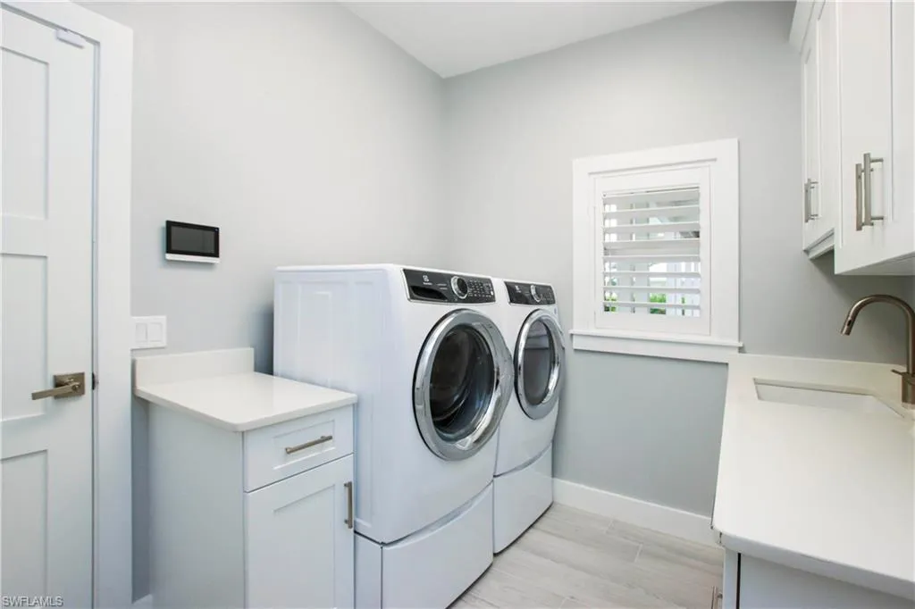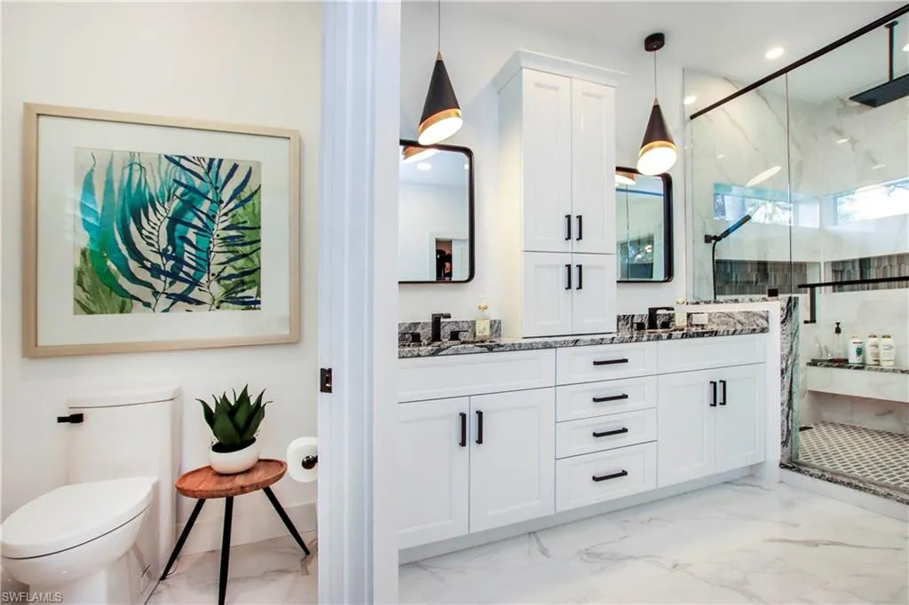 Welcome to an exquisite coastal retreat in South Fort Myers, where luxury and sophistication meet relaxed Florida living. This stunning four-bedroom, two-and-a-half-bathroom estate spans 2,363 square feet of meticulously designed space, delivering an unparalleled blend of style, comfort, and functionality. Nestled just moments from the world-renowned Sanibel and Fort Myers beaches, as well as premium marinas, this home offers an exclusive lifestyle in one of Southwest Florida’s most coveted neighborhoods. Step inside to discover an open-concept layout that exudes contemporary elegance. The living area, with its abundant natural light, flows seamlessly into the gourmet kitchen. Here, you’ll find top-tier appliances, complemented by waterfall-edge quartz countertops and a striking island—ideal for culinary endeavors or casual gatherings. Every detail in this home speaks of high-end craftsmanship, ensuring a luxurious living experience. The primary suite serves as a private sanctuary, occupying its own wing for maximum privacy. Unwind in the spa-like en-suite bathroom, which features dual vanities, a deep soaking tub, and an oversized walk-in rain shower. This retreat is designed for ultimate relaxation, promising serene moments of peace at the end of each day. French doors open to a sprawling outdoor oasis that epitomizes the best of Florida living. The resort-style backyard boasts a heated saltwater pool and spa, surrounded by 1,400 square feet of shell-stone travertine flooring. Here, you can enjoy the lush, tropical landscaping and bask in the sun or relax under the covered lanai, complete with automatic hurricane shades for year-round protection. An outdoor shower adds to the convenience, making this space perfect for both entertaining and everyday leisure. Additional features include an oversized, air-conditioned 2.5-car garage with epoxy flooring and custom built-in cabinetry, a fully equipped laundry room, and a new metal roof installed in 2021. No detail has been overlooked in this professionally remodeled home, ensuring a move-in-ready experience for the discerning buyer. Gulf Harbour Yacht & Country Club membership is available, offering access to world-class amenities. This extraordinary residence is more than a home—it’s a lifestyle. Don’t miss your opportunity to own this slice of paradise.