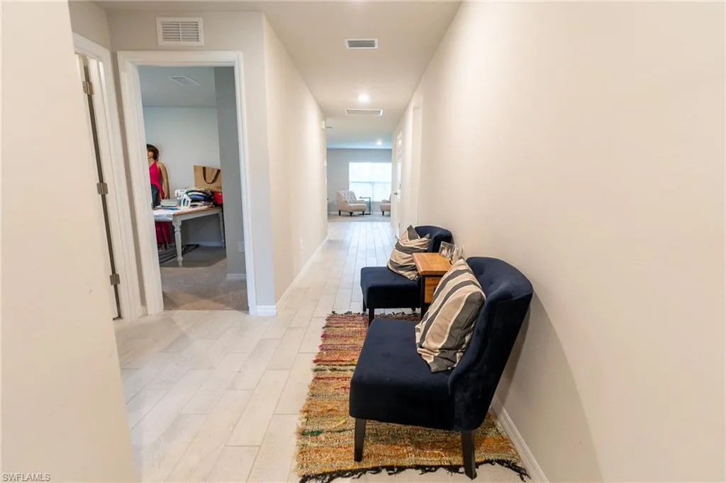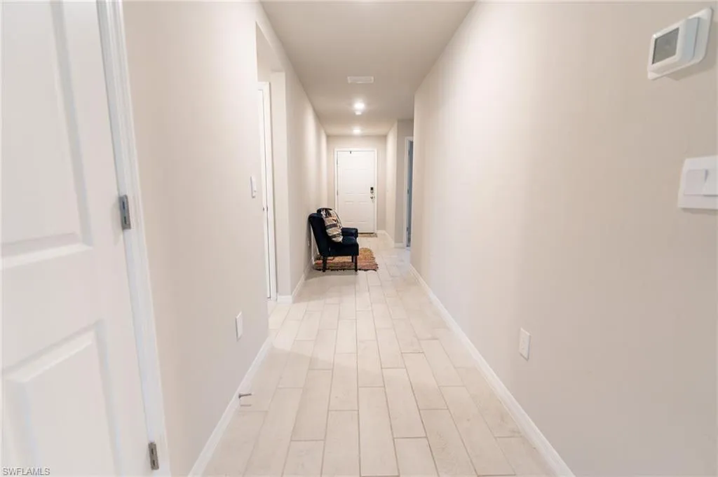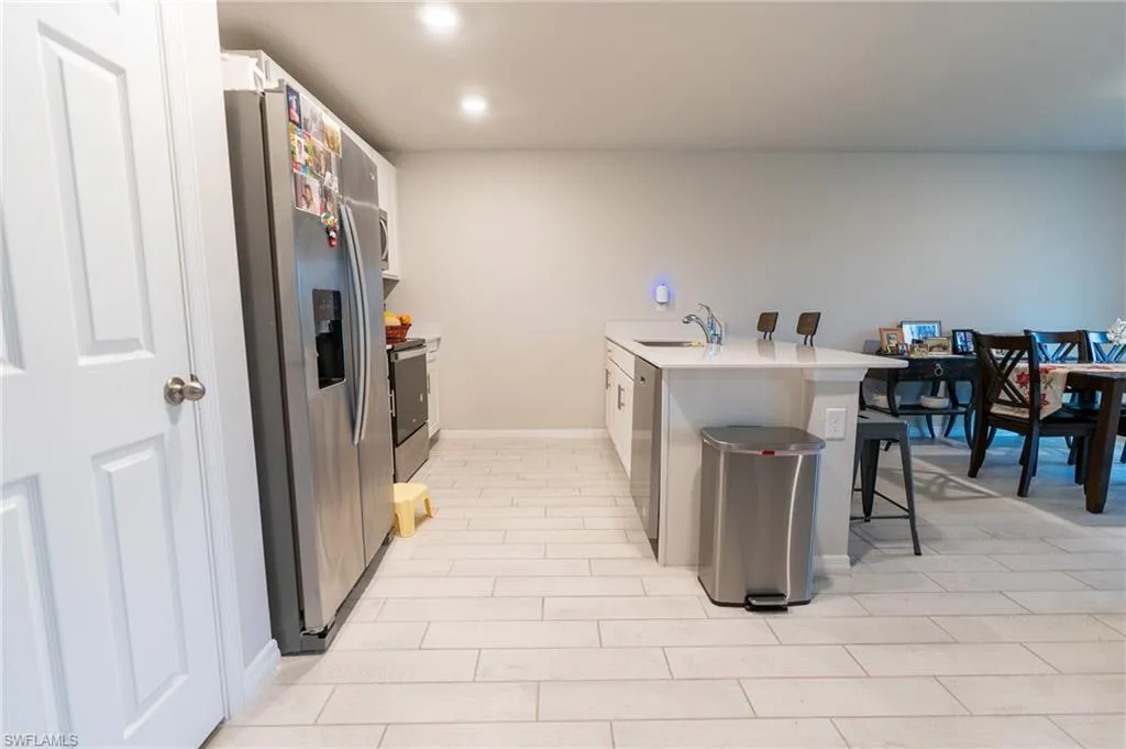 Your Private Oasis Awaits! Discover tranquility with this beautifully updated 4-bedroom, 2-bath single-family home. This Home is nestled in the booming area of West Lehigh Acres, close to I-75, Shopping and More! 1499 Square Feet under air, Open Concept/split bedroom plan, that maximizes the use of space making it feel incredibly Larger than it appears. This open concept Home comes with designer cabinets and hardware, 6”x24” PLANK tile through all living areas, 18” tiled showers, Quartz counters throughout, all Stainless-Steel kitchen appliances, Washer/Dryer, Storm Shutters, and the latest Smart Home technology with a smart thermostat, smart door lock, video doorbell, smart garage controller, hands free commands and more. You’re wonderfully open and inviting kitchen with bar stool seating, and complete open concept.