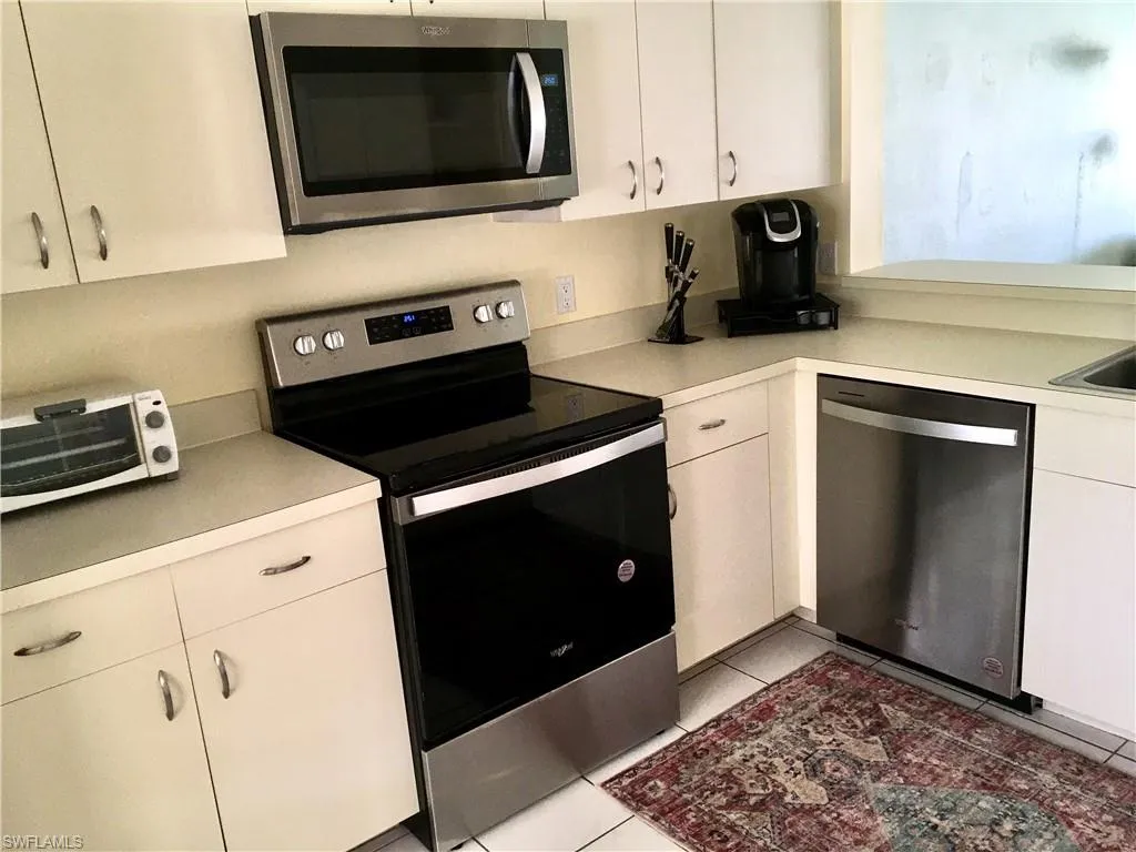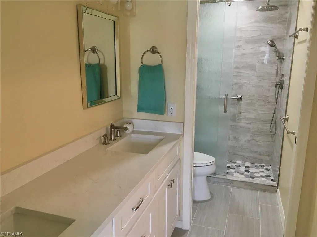 Enjoy some quiet time and tranquil breezes on the newly tiled lanai of this 2 bedroom, 2 bath home overlooking the amazing view of the lake. This popular model is sure to please with its cathedral ceiling in the dining / living area. The master bedroom is spacious and can easily accommodate a king size bed. The master bathroom, which received an upgrade in 2022 with a gorgeous double sink vanity and a shower with dual shower heads, is stunning. A new garbage disposal was installed in 2021 and the washer was replaced in 2023. A total “NEW PLUMBING RE-PIPE” was completed on 05-14-2024, to replace the Polybutylene pipes. New stainless steel kitchen appliances were installed on 05-21-2024, and a “NEW HVAC SYSTEM” was installed ON 08-12-2024. Another noteworthy upgrade in May of 2024, are new smoke detectors. This home has been well maintained. The sought-after community of Sapphire Lakes is centrally located and offers wonderful amenities, including the ever so popular pickleball. For the outdoor enthusiasts, there is a lovely walking path around the lake. Start living your Naples dream !