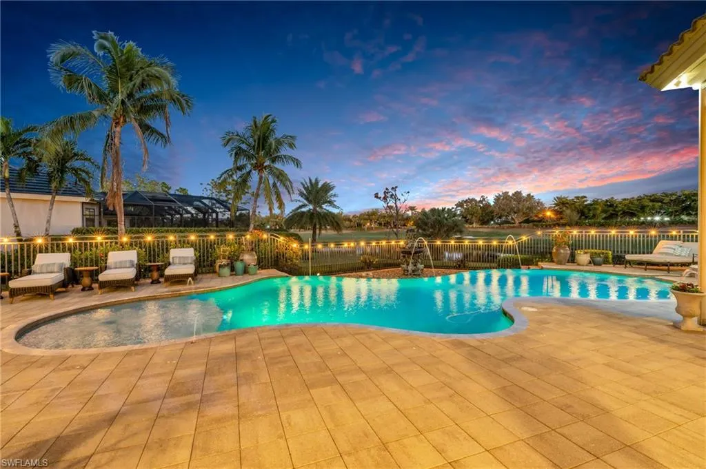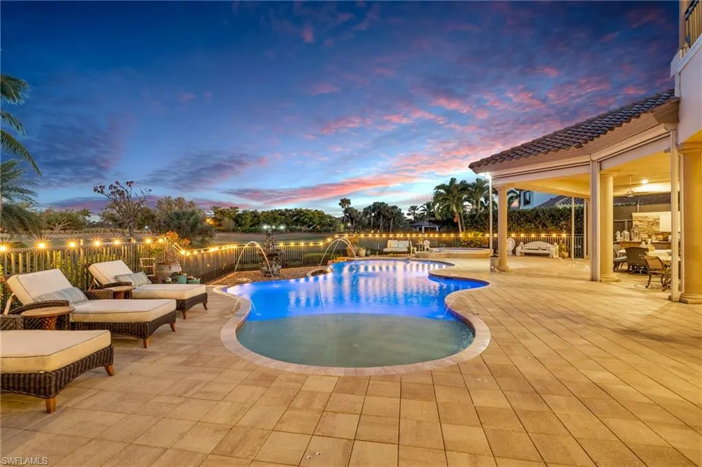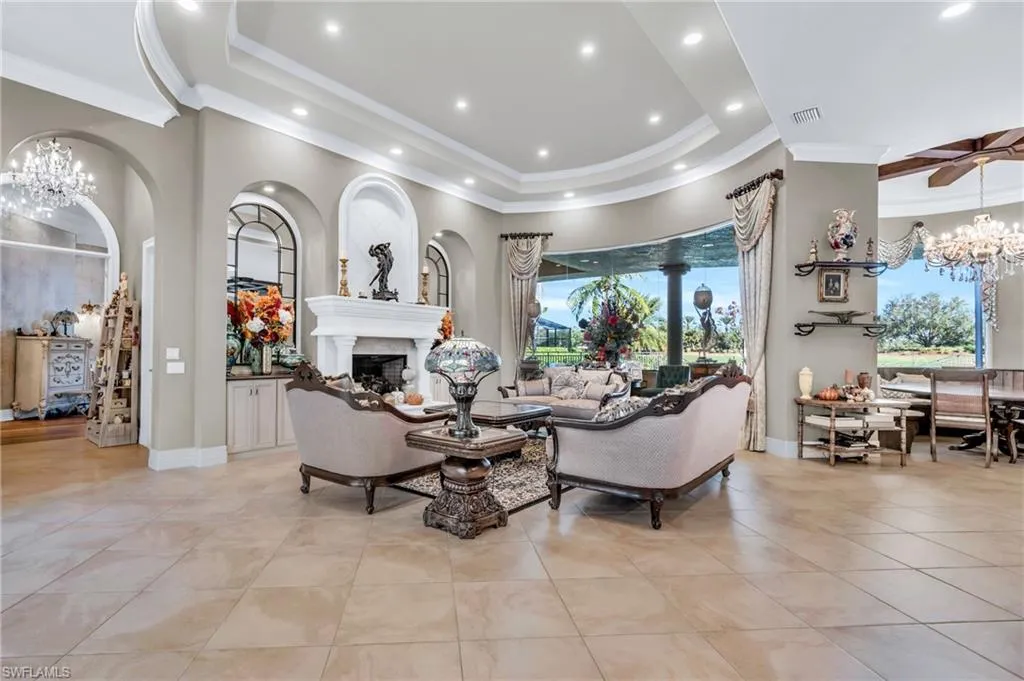Welcome to this custom grand estate in prestigious Terabella neighborhood of Renaissance in Fort Myers. On a magnificent half-acre lot, this residence boasts breathtaking views of the lake and hole #9 of the Arthur Hills championship golf course. Enjoy superior details throughout this home including elegant accent walls, custom ceiling features, thoughtful spaces to entertain, and a seamless flow from the expansive great room to outdoor oasis. The outdoor living area is the jewel of this home, showcasing a gorgeous infinity edge pool, an oversized spa, and ample space to relax and unwind, all while taking in the unbeatable views. Each bedroom in this home is a retreat, thoughtfully positioned for privacy with access to the outdoor spaces. The primary suite is a sanctuary complemented by the golf course views and spa-inspired en suite. Additional notable features are the gourmet kitchen with luxury appliances, expansive three-car garage, whole home generator, beautiful wood flooring in the bedrooms and more! The Renaissance lifestyle offers an Arthur Hills championship golf course, a lavish resort-style pool and pavilion, a children’s play area, a full-service spa and fitness center, six red clay tennis courts, two pickleball courts, and two bocce courts. Golf memberships available immediately.