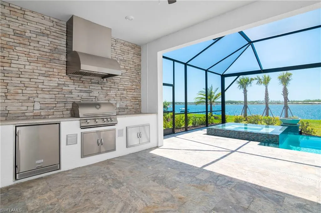 WELCOME to this Magnificent Bougainvillea Model, is one of the iconic residences from LENNAR Builders. Builth on the Oversized Lot in 2022, home futures exclusive interior design elements, luxury kitchen features, elegant bathroom features and much more. This Property combines the conveniences of a contemporary luxury villa with a tranquil setting, is one of the top developer series in VISTA WildBlue. You can have a peaceful and unwinding time thanks to the property’s expansive view of a beautiful lake. This three-bedroom house with a den is exclusively for you. Features ceramic tile floors, modern-style cabinetry, quartz countertops, double vanities, large tub, a gourmet kitchen, and a master bedroom with a his-and-hers walk-in closet. Open concept dining and living space. A beautiful residence with a modern, well upgraded, and expansive living style. Stunning, expansive terrace with a pool and infinity spa and outdoor kitchen. Gorgeous outdoor living invites you to enjoy unforgettable views, prepare the ideal meal in well appointed outdoor kitchen, to enjoy beautiful sunsets and immerse yourself in salt water infinity pool or spa. Tankless water heater, three-car garage, pre-wired automation system, impact resistant windows/doors, laundry in the residence and much more. UNFORGETABLE LAKEFRONT LIVING experience with its WORLDCLASS Amenities awaits for you such as boating, restaurant, a full spa, a full-service gym, tennis, a pool, sauna, a bike path, a playground, and many more. Take a beautifull drive down to amenity center and enjoy picturesque views of this magnificient lakefront community. Placed at a prime location near beautiful Bonita and Naples Beaches, exclusive upscale restaurants and shopping. Just a couple miles away from SWFL Regional Airport. Come, and indulge yourself in unforgettable FLORIDA LIFESTYLE.
