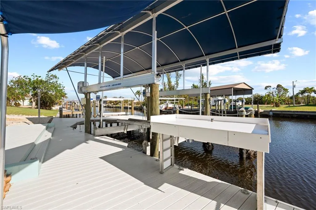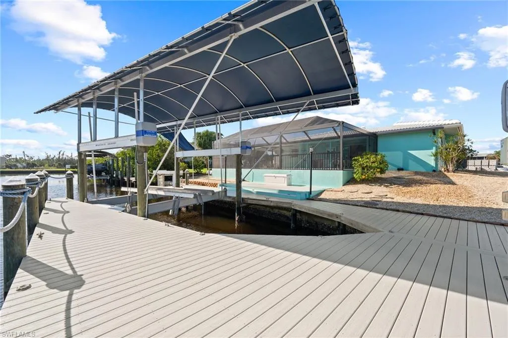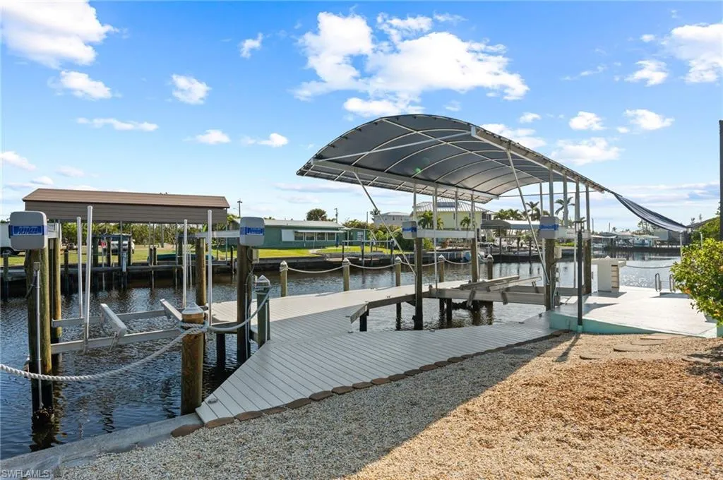 WHOA!!! Have I got the Charter Captains, Fishermen or Women’s DREAM PROPERTY IN PARADISE!! This home is like having your own MINI MARINA right here! With two boat lifts(yes I said 2) one 20,000 lb. and the other is 7000 lb. gives you a choice between Deep Sea fishing and Shallow water fishing. The Captains wraparound composite wood dock will last a lifetime and has plenty of room for maneuvering with a large cleaning station and Dock Box. Situated on the Dawson Canal with Direct 5 minute access to Matlacha Pass which gives you many directional options from Pine Island Sound to the North towards Cabbage Key or South to the Sanibel Bridges and Fort Myers Beach to exploring the Caloosahatchee River, your choice! In any direction you decide, the fishing and boating options are endless from catching a World Famous Tarpon in Boca Grande Pass to hunting the elusive snook, redfish and snapper in the back waters. You are right in the middle of Some of the Best fishing Florida has to offer! The home itself…being completely re-constructed down to the stringers the upgrades are endless throughout the home including NEW ELECTRICAL WITH TOUCH LIGHTING, NEW PLUMBING, LUXURY VINYL FLOORING, HURRICANE RATED WINDOWS AND DOORS, GRANITE COUNTER TOPS, SHAKER CABINETRY, and BRAND NEW A/C AND DUCTWORK, just to name a few. Being SOLD TURN-KEY FURNISHED makes moving in a breeze and the RELAXED COASTAL DECOR will Welcome you as you walk through the door. The master suite has sliding door access to the covered lanai area with paver pool deck so you can slip into the HOT TUB after a great day of fishing or COOL OFF IN YOUR OVERSIZED POOL with a well-deserved beverage. There are 50 rod holders in the ONE CAR GARAGE along with the LAUNDRY AREA/UTILITY SINK, and the owner expanded the driveway and put in a tall reinforced Carport to house more and bigger vehicles along with cover for the pool equipment, 50lb ice machine, and extra freezer to store all those fish!