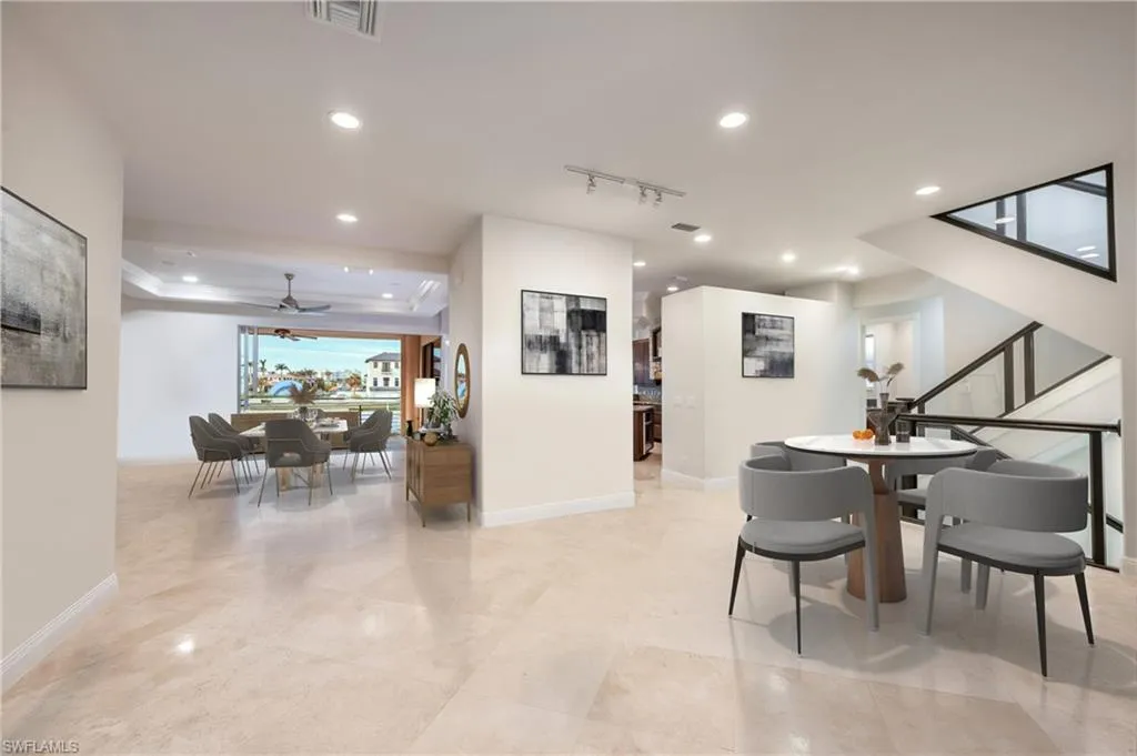 Are you looking for income producing properties on the water and near the beach? Look no further. Renter in place for season, starting October 1, 2025 ~ 2026 / $110,000 can be your income! No Monthly HOA Fees. Rent nightly, weekly, monthly or yearly: you decide. This exceptional property, complete with a spacious garage, offers a unique chance to invest in a prime rental opportunity or create your perfect sanctuary in scenic Naples. Imagine the sound of your favorite music playing on the surround sound system while you unwind in your own piece of paradise.