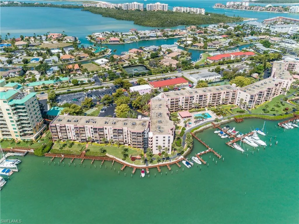 Gorgeous views from this updated 1 bedroom, 1 bath, top floor condo in highly desired A building. Sit on your lanai that captures big views of the Marco River leading into the Gulf of America in just minutes and watch the boats go by. Amenities are endless; on site Marina with boat slips available for lease only $600 per year. Tennis / pickleball courts, 2 pools and hot tubs, fishing pier,new community clubhouse at marina that is on site, and close proximity to restaurants and shopping. This updated coastal condo is the perfect getaway or investment with electric included in monthly fees. This complex also allows nightly, weekly ,and monthly rentals. New updated lanai railings and screens, A/C updated in 2017, hot Water Heater updated in 2021, gorgeous quartz countertops, sinks and faucets updated in 2021. All lighting and switch plate and outlet covers updated in 2021. All windows replaced in 2022 that are hurricane impact for maximum protection. Newer SS Appliances, and stove in 2021. New glass/screen door at the entrance added in 2021 along with Washer/Dryer hook-up in condo. This turnkey unit in this gated community is a prime location for you’re next home.