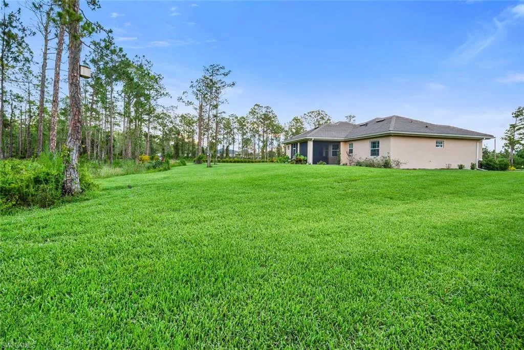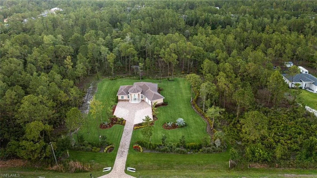 New price. All reasonable offers warmly welcomed—seize the chance to claim this extraordinary estate as your own! Escape to Your Private Paradise! Tucked away on a sprawling 2.81-acre oasis, this breathtaking estate home seamlessly marries timeless elegance with modern luxury. A striking stone-accented exterior and a grand covered entry with chic impact doors welcome you to a world of refined living. Step inside to discover a masterpiece of design—5 1/4’’ crown molding, bold seven-inch baseboards, solid wood plantation shutters, and soaring tray ceilings grace the living and dining spaces, exuding sophistication at every turn. The heart of the home, a gourmet kitchen, dazzles with sleek shaker cabinetry, luminous quartz countertops, and custom LED lighting, perfect for culinary adventures. Porcelain plank tile flows effortlessly throughout, guiding you to a serene, covered patio for seamless indoor-outdoor living. Retreat to the expansive 17×17 primary suite, a haven of tranquility, featuring a cedar-lined walk-in closet and a spa-inspired bathroom with dual sinks, a rejuvenating rain shower, and a decadent soaking tub. Pre-wired for media, this tech-savvy home is ready for your modern lifestyle. Outside, a lush tapestry of Flori tam grass, swaying palms, vibrant perennials, majestic Live Oaks, and 60 Areca palms creates a private, picturesque retreat. Envision your future with room to craft a sparkling pool, a stylish outdoor kitchen, or a charming guest house—the possibilities are endless! Nestled near top-rated schools, premier shopping, and exquisite dining, this secluded sanctuary offers the best of both worlds.