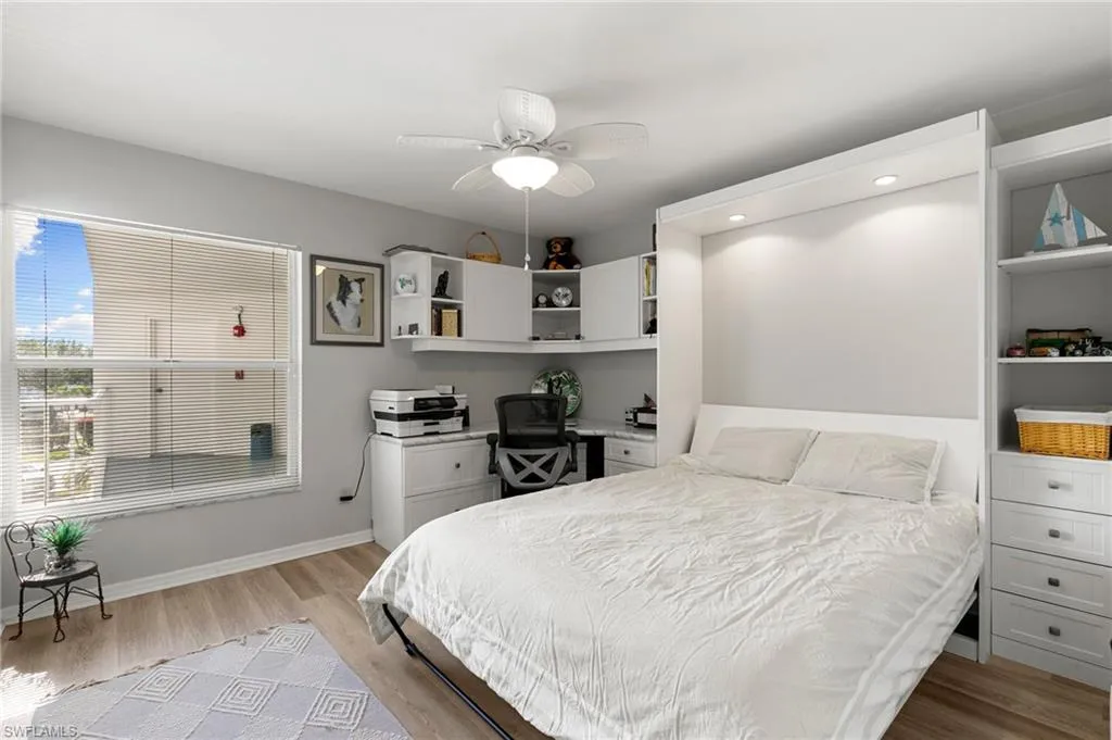 The spacious second bedroom doubles as a home office or a guest room with an easy & stylish drop down Murphy Bed. Washer & Dryer in unit. Assigned covered parking and extra storage unit.