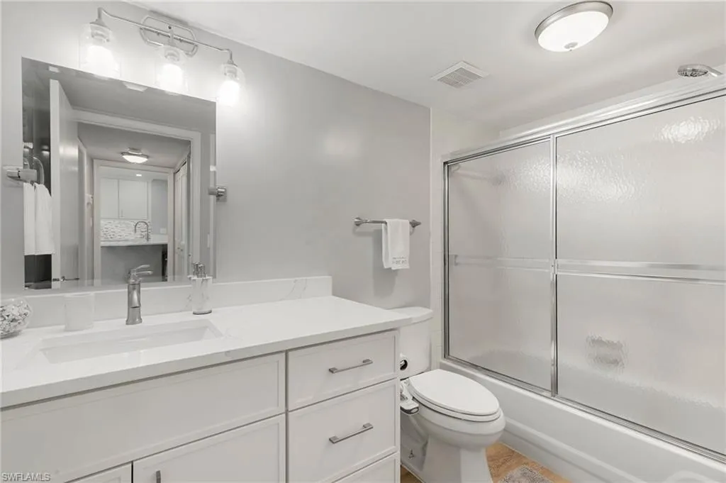 Welcome to your dream retreat on Marco Island! Featuring wood look, cortex luxury vinyl tile floors throughout, this fully remodeled 2-bedroom, 2-bathroom waterfront condo combines modern luxury with the best of coastal living. The open-concept living space is bathed in natural light, offering breathtaking views of Factory Bay.