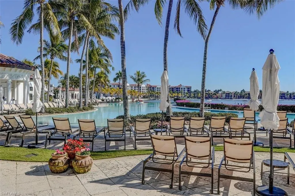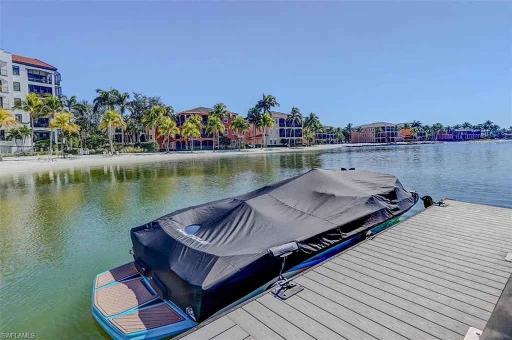 Move right into this spacious, light & bright 3 Bedroom 3 Bath Corner Unit Condo with outdoor storage closet, 2 Spacious Tiled Lanai’s and PRIVATE DOCK (deeded separately) overlooking Lake Como in the Award Winning Gated Community of Miromar Lakes Beach & Golf Club. Lush Landscaping, Vibrant Lifestyle for all ages and Families with Amenities galore! Enjoy 3 miles of Private white sand Beach, 2 Marinas, Racquet Club; Lighted Har-Tru Tennis Courts, Bocce & Pickleball, Gourmet Dining at the Beach Clubhouse, Casual Dining at the Outdoor Blue Water Beach Grill, State of the art Fitness Center, Beach Club/Beach Clubhouse, Concierge Services, Wellness Center, European Style Spa & Full Service Salon, Watersports, Boating & Marine Services. Signature Championship Golf with Member exclusivity and more! A/C replaced 2022, Water Heater replaced March, 2023, Refrigerator, Microwave & oven replaced 2022/2023. Conveniently located close to Shopping, Restaurants, FSW International Airport, Schools and major highways. Enjoy the Lifestyle and wonderful array of amenities & activities.