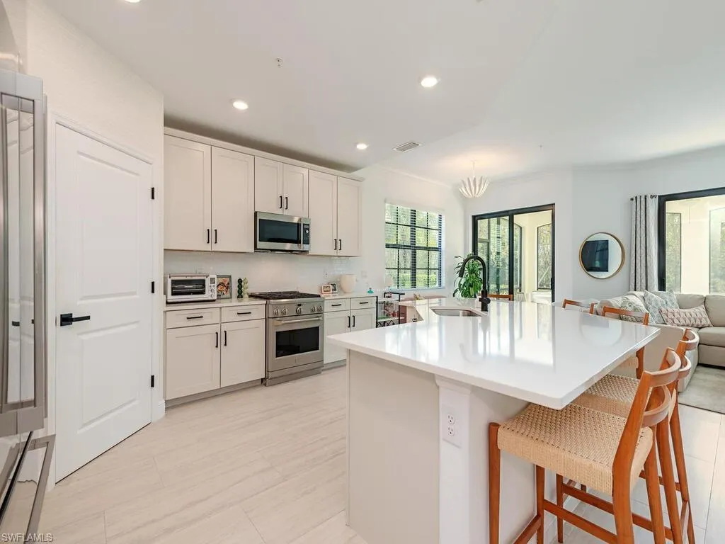 Elegant and modern Viansa Coach home in the prestigious Talis Park. The open contemporary floor plan offers custom lighting throughout the home, the natural light reflects from the gracious floor plan. The well-equipped kitchen has a natural gas cooktop. The master suite boasts the private access to the lanai. Bathrooms offer custom cabinetry with custom closet arrangements and frameless glass enclosures. Primary bedroom is separate from the 2nd and 3rd bedrooms for privacy. 3rd bedroom is being used as a den. All custom large closets for ample storage. The oversized garage is a plus with an abundance of storage. Talis Park amenities include tennis, golf, pools, spa, state of the art fitness center, concierge to handle activities and all social events and much more. Only a short drive to downtown Naples to restaurants, shopping, concerts and beaches. The golf membership is optional.