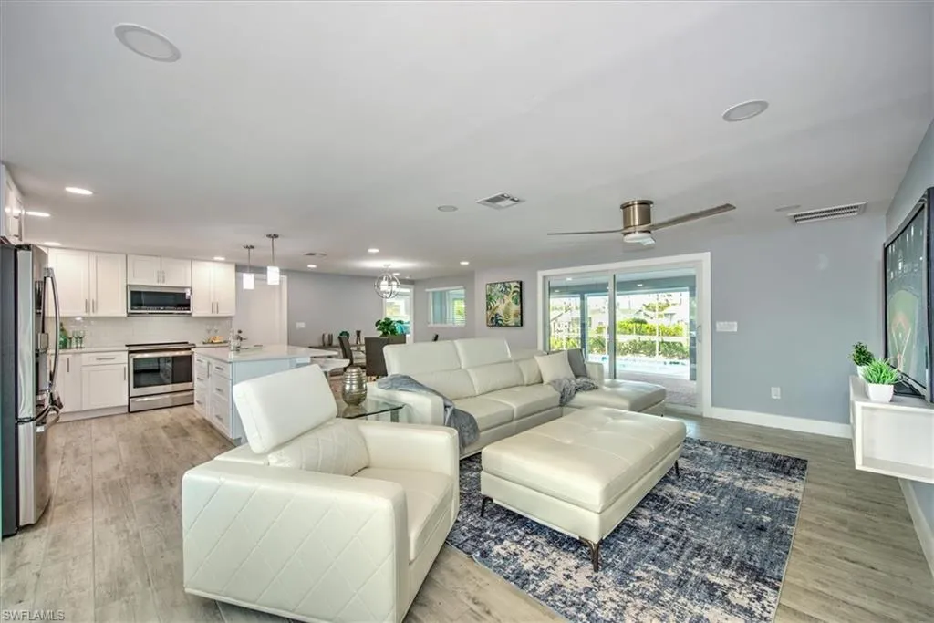 PRICE DRASTICALLY REDUCED FOR A QUICK SALE & SELLER FINANCING AVAILABLE! Don’t wait for new ground-up construction when you can move right into this meticulously rebuilt 3-bedroom,2-bath Gulf access pool home. This stunning island residence offers the ultimate island living with everything you could dream of! Step into the open floor plan, featuring elegant wood plank tile flooring, pristine white shaker cabinets, sleek stainless-steel appliances, and gorgeous quartz countertops. Enjoy the Florida Gulf lifestyle year-round inside and out with the fully screened lanai overlooking the new pool and serene canal. The expansive Trex dock, which requires zero maintenance, includes a private boat dock with lift a true boaters dream, quick and easy access to the Gulf of Mexico. Professionally rebuilt to exceed any expectations, this home boasts a new roof, AC, electrical, plumbing, and so much more. All homes built by this developer come with clean air certifications, ensuring peace of mind for years to come. Located in one of the