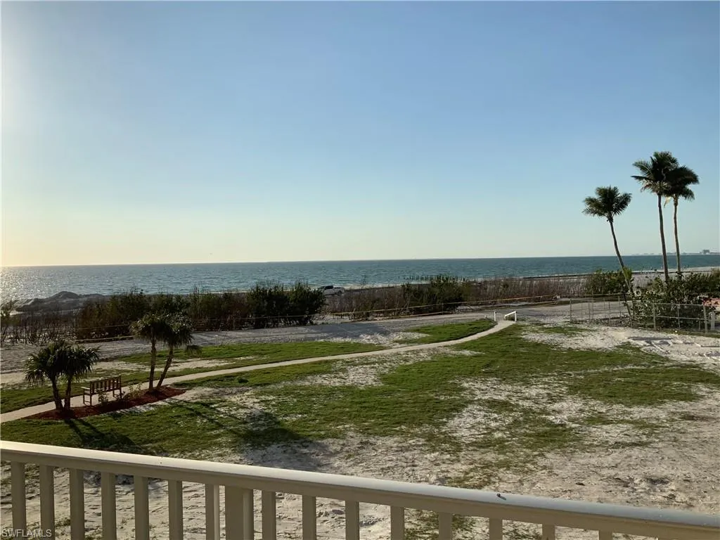 BEACH FRONT BEACH VIEWS OUT ALL WINDOWS This remodeled first floor above the ground level Condo , looks out to the Beach and Gulf of Mexico , with view up the north end of Island and Sanibel Island! Listen to waves while you sleep! New tile floors, NEW HURRICANE IMPACT GLASS THRU OUT , new A/C , new Hot water heater, New QUARTZ counters , new bath & shower !! Great WEEKLY rental Condo Bldg. Walk to beach steps out the door . Complex has it all , tennis , pickle ball , bocce ball, shuffle board , bike racks , community room , beach sun chairs and tables , pool has geo thermal heating , pond with fountain , all paver parking and roads. Large parking area across from a small mall has stores & shops ! Close to other shops , great walking paths in area ! Beach trolley runs past this complex for easy access to whole Island.