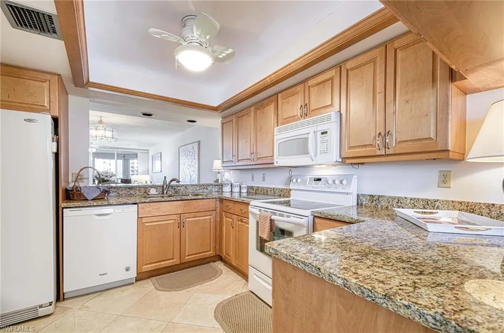 Great Views, Great Location. You can live across the street from one of America’s top beaches, Delnor Wiggins State Park. A deeded walkway allows you access to Vanderbilt beach. Your community pool sits on Vanderbilt Canal. The Canal provides easy access to the Gulf of Mexico thru Wiggins Pass. Watch the dolphins, manatees, and boaters go by lounging in the pool or your condo. This spacious 2 bedroom, 2 bath unit has great views of the Gulf of Mexico. Newly remodeled bathrooms. The master bedroom opens onto a tiled lanai with views of the Gulf of Mexico and the State Park. Electric storm shutters when needed. The large guest bedroom has corner windows with views of the canal, tiki hut, boat docks, and pool area. Whole house surge protection system.