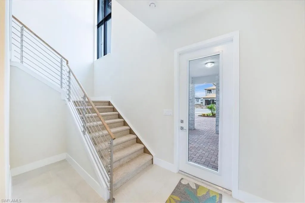 Stunning New Construction in Maple Ridge! Magnificent home built in 2023. Largest estate home in sought-after Maple Ridge community, situated on premium lot offering water views. A 2-story masterpiece boasting 4 bedrooms, 3.5 bathrooms, loft, spacious 3-car garage, and an abundance of storage. Impeccable craftsmanship w/$284,000 worth of upgrades carefully selected by owners. A separate entrance to office/guest bedroom Casita w/full bath. Relax in style w/heated, saltwater pool/spa. Extended tiled lanai is fully screened, providing a bug-free outdoor oasis. Plus,plumbing/electric wiring ready to install a dream outdoor kitchen!Impact glass windows and doors, 3-car garage, and Chef’s package w/custom cabinets/appliances. Kitchen features Quartz countertops,stunning backsplash. Owner’s suite master a true retreat w/2 walk-in closets, double door entry, oversized bathroom w/walk-in shower, and 2 water closets. Entertainment ready w/upgraded electrical options, including SONOS surround sound system/upgraded Wi-Fi networking. Located in Ave Maria-Naples, w/beautiful clubhouse, walking trails/bike paths, excellent schools, town shopping, dining, recreation activities, and events.