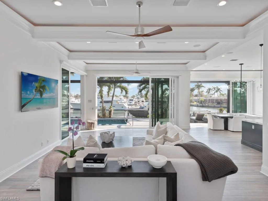 WIDE water views, picturesque views of the Yacht Club and Marina, River and Jolley bridge, ideally situated at the beginning of Marco Island. This home boasts 4 bedrooms + Den and 4 bathrooms. The Primary bedroom