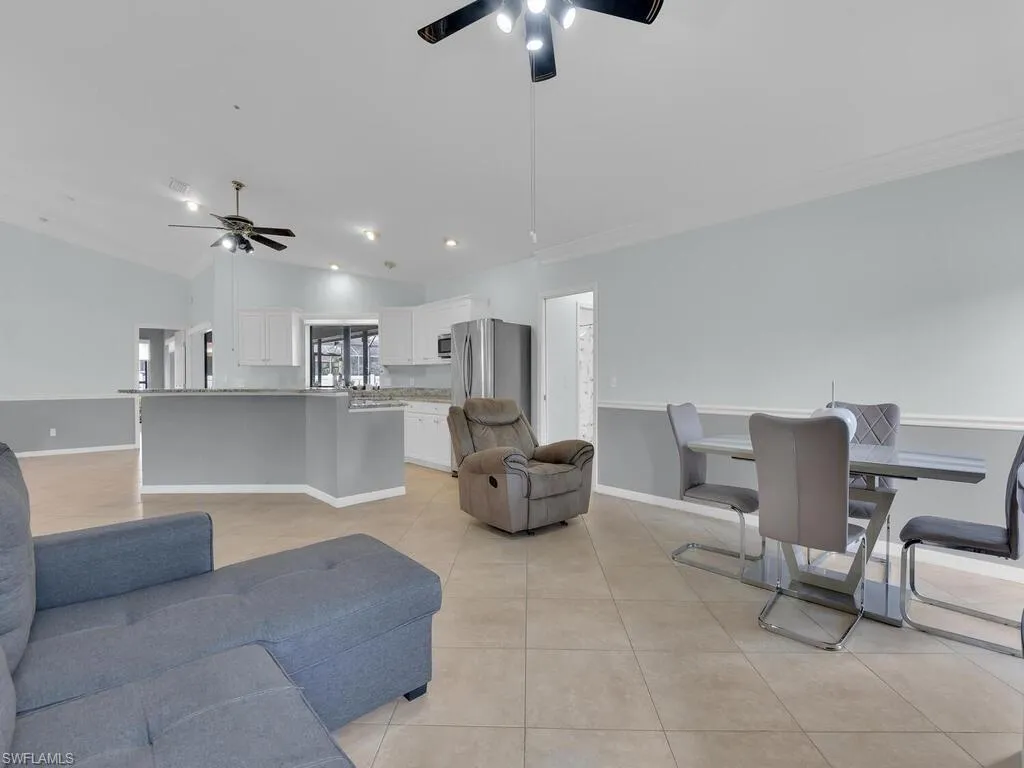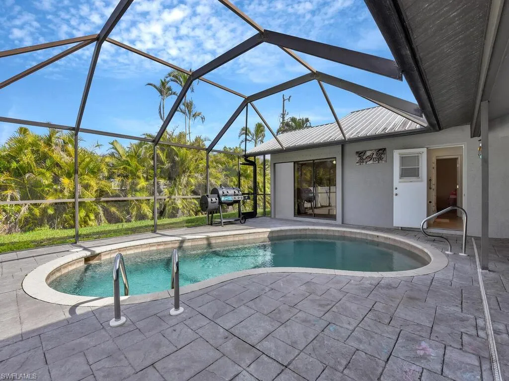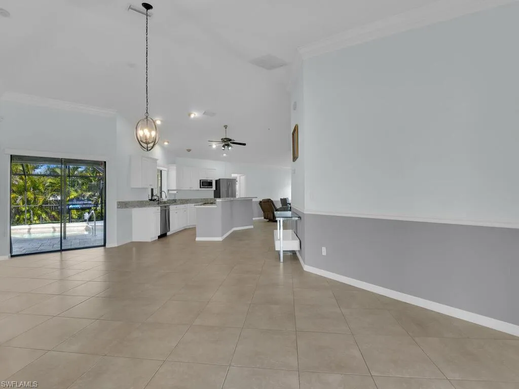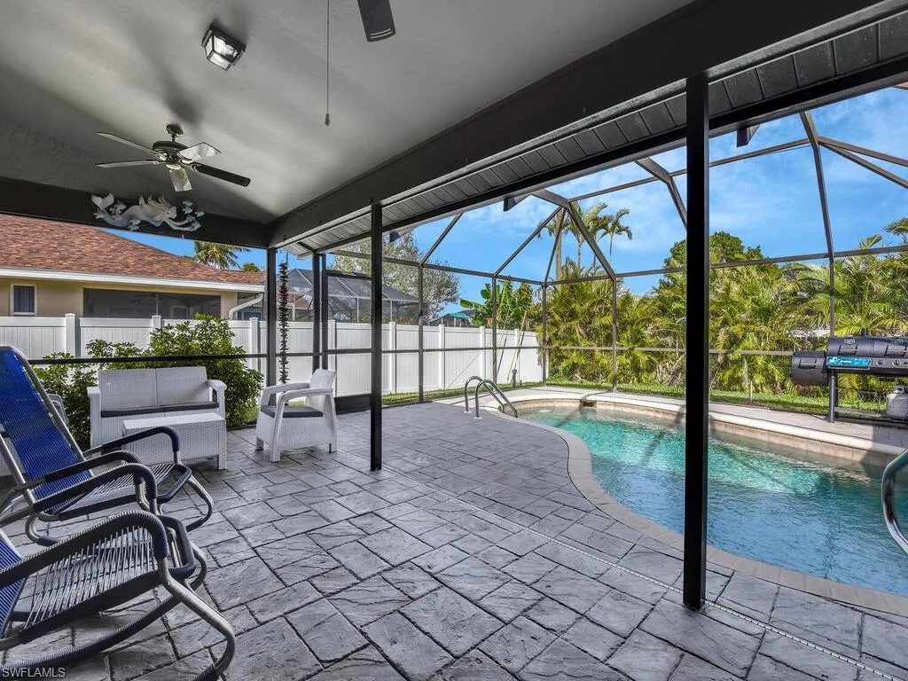 This beautifully maintained 3-bedroom, 2-bathroom pool home located in a highly desirable area of Southwest Cape Coral. This home offers a perfect blend of comfort and style, featuring elegant granite countertops, a spacious pantry, and high ceilings accented with crown molding. The thoughtful design includes pocket sliding doors that open seamlessly to the expansive lanai and pool area, creating the ideal space for entertaining or relaxing.