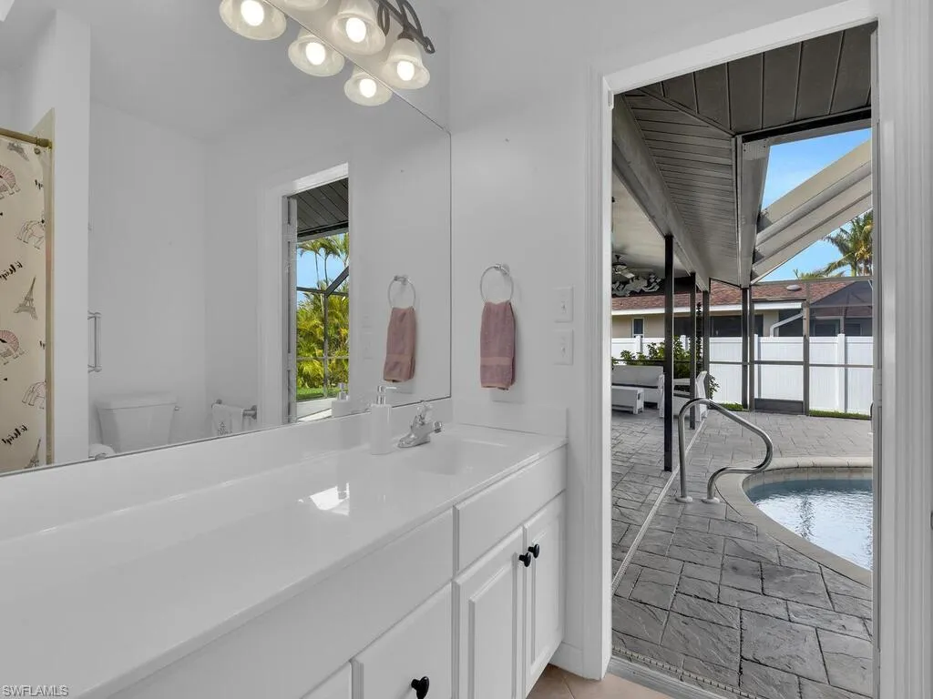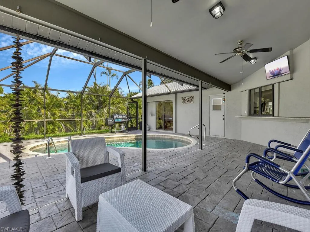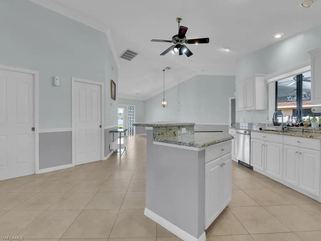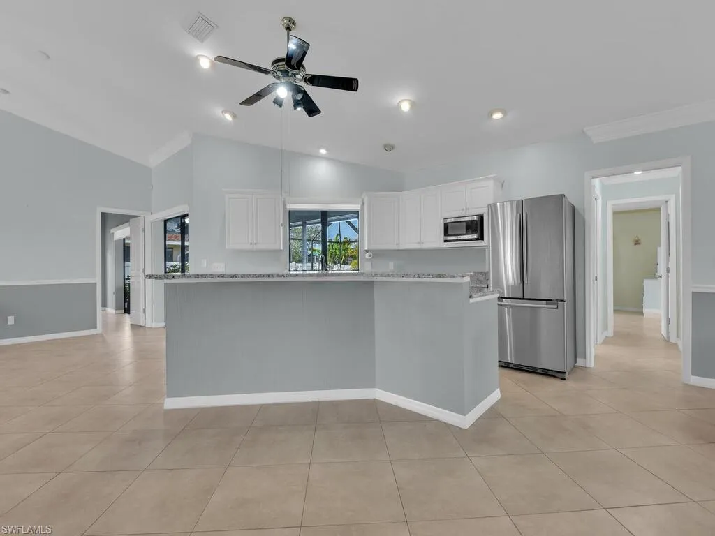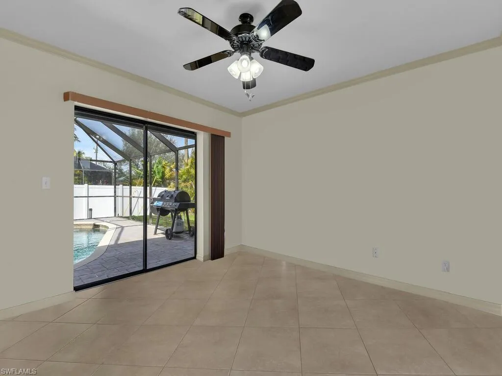 This beautifully maintained 3-bedroom, 2-bathroom pool home located in a highly desirable area of Southwest Cape Coral. This home offers a perfect blend of comfort and style, featuring elegant granite countertops, a spacious pantry, and high ceilings accented with crown molding. The thoughtful design includes pocket sliding doors that open seamlessly to the expansive lanai and pool area, creating the ideal space for entertaining or relaxing.