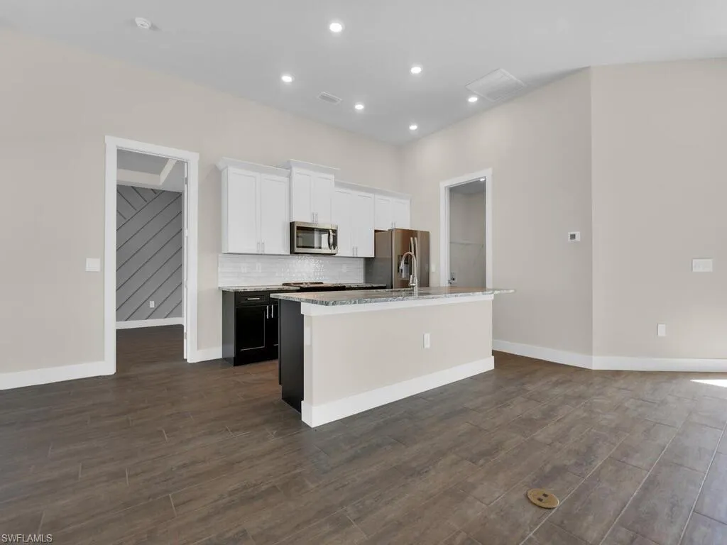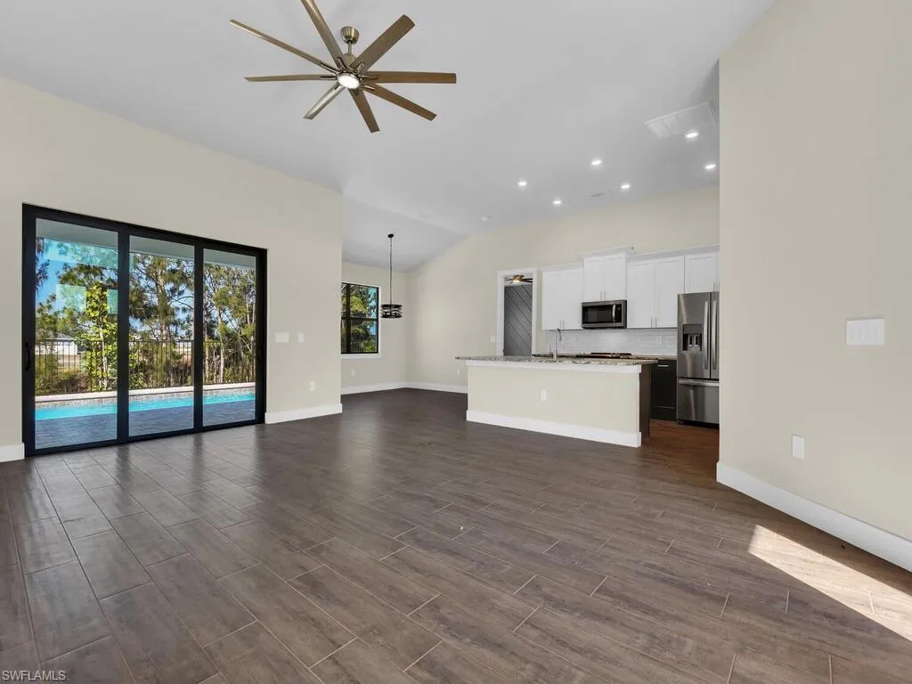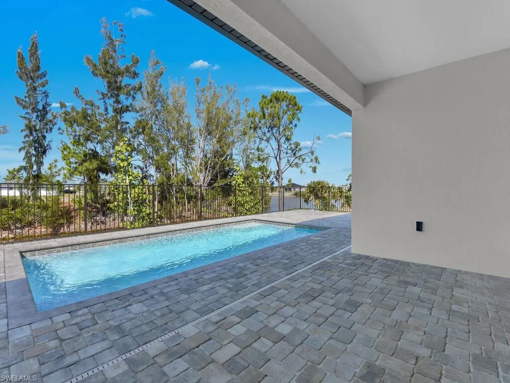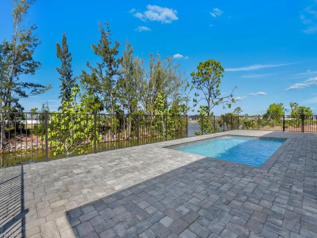 Discover the brand-new Custom Douglas Brooke Home on waterfront lot featuring 4 bedrooms, 2 bathrooms, and a 3-car garage, complete with impact-resistant windows and doors. Spanning over 2000 square feet, this home is adorned with high-end finishes. Step through the impact-resistant glass double doors and into a spacious great room showcasing elegant dark wood-look tile, soaring ceilings, and sliding doors that lead to an expansive pool area. The kitchen boasts crisp white upper cabinets, striking black lower cabinets, quartz countertops, and stainless-steel appliances. A large island separates the kitchen from the living space. Adjacent to the kitchen is a huge walk-in pantry and a sizable laundry room with a sink. The dining area, set behind the kitchen, features a vaulted ceiling. The master suite is a true retreat with walk-in closets and an ensuite bathroom with dual vanities and a walk-in glass shower. The home’s guest wing offers three additional large bedrooms and a full bathroom. Completing this residence is a generous 3-car garage and a pool equipped with an alarm system. Additional features include in-wall pest control, pre-wiring for cable in the master and living rooms, smart home capabilities, and impact-rated windows and doors. Close to shopping, nightlife, boat ramps, hospitals, major airports and so much more! Rates as low as 3.99% for well qualified buyers with DBL Home Mortgage. 4140 NE 19TH PL SITS ON AN OVERSIZED INTERSECTING FRESH WATER CANAL LOT. NO FLOOD ZONE. NO HOA FEES.