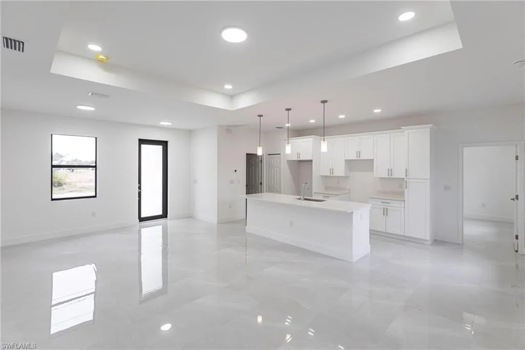 Beautifully crafted home built in 2024 and set on a spacious 0.25-acre lot. Designed with modern comfort and clean architectural lines, this residence features tray ceilings and an open-concept layout filled with natural light. The kitchen showcases quartz countertops, stainless steel appliances to be installed at time of sale, and sleek contemporary finishes that flow seamlessly into the main living areas. A split floor plan offers three generously sized bedrooms, two well-appointed full baths, and a convenient indoor utility room. Enjoy outdoor living on the covered under-truss lanai, ideal for relaxing or entertaining. Impact windows enhance durability, energy efficiency, and storm protection. A thoughtfully designed, modern home offering quality construction and timeless appeal.