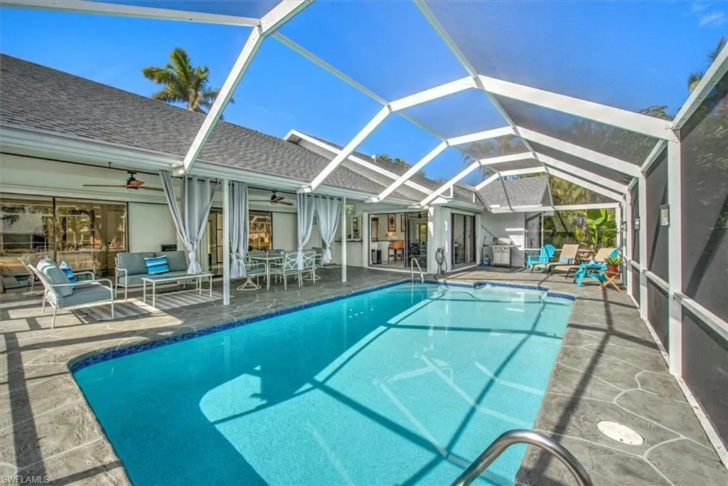 Welcome home to this 4/3/2 Gulf access pool home in the desired SW section of Cape Coral which can be sold turnkey for immediate use! The interior of this home features beautiful tile flooring throughout, high ceilings and the desired split floor plan. The large bright white kitchen boasts a huge Island, solid surface counters, stainless appliances and overlooks the family room, great for entertaining! The ample sized master bedroom has walk in closet space, private sliders to the pool area and an en-suite bath with dual sinks, soaking tub and a custom tiled walk-in shower. Step outside to your private oasis where you can relax by your pool and enjoy watching the dolphins and manatee as they play in the saltwater canal. New roof in 2022, new boat dock/lift in 2024, impact windows, and so much more! Perfect for your new Florida residence, vacation rental or a combination of the two!